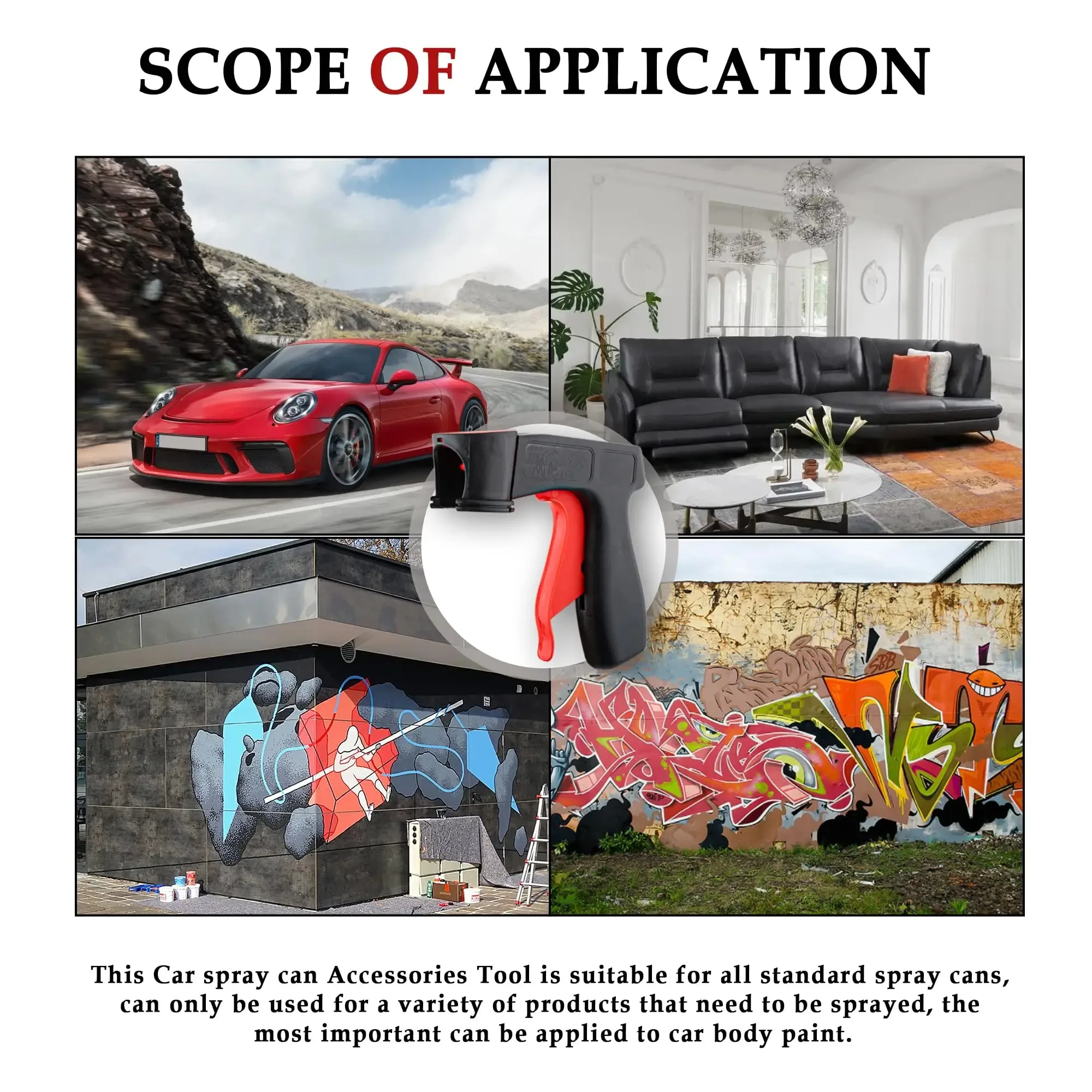 Compatible with standard spray paint cans. Ideal for automotive maintenance tasks like painting, cleaning, and lubrication. Meets diverse user needs.