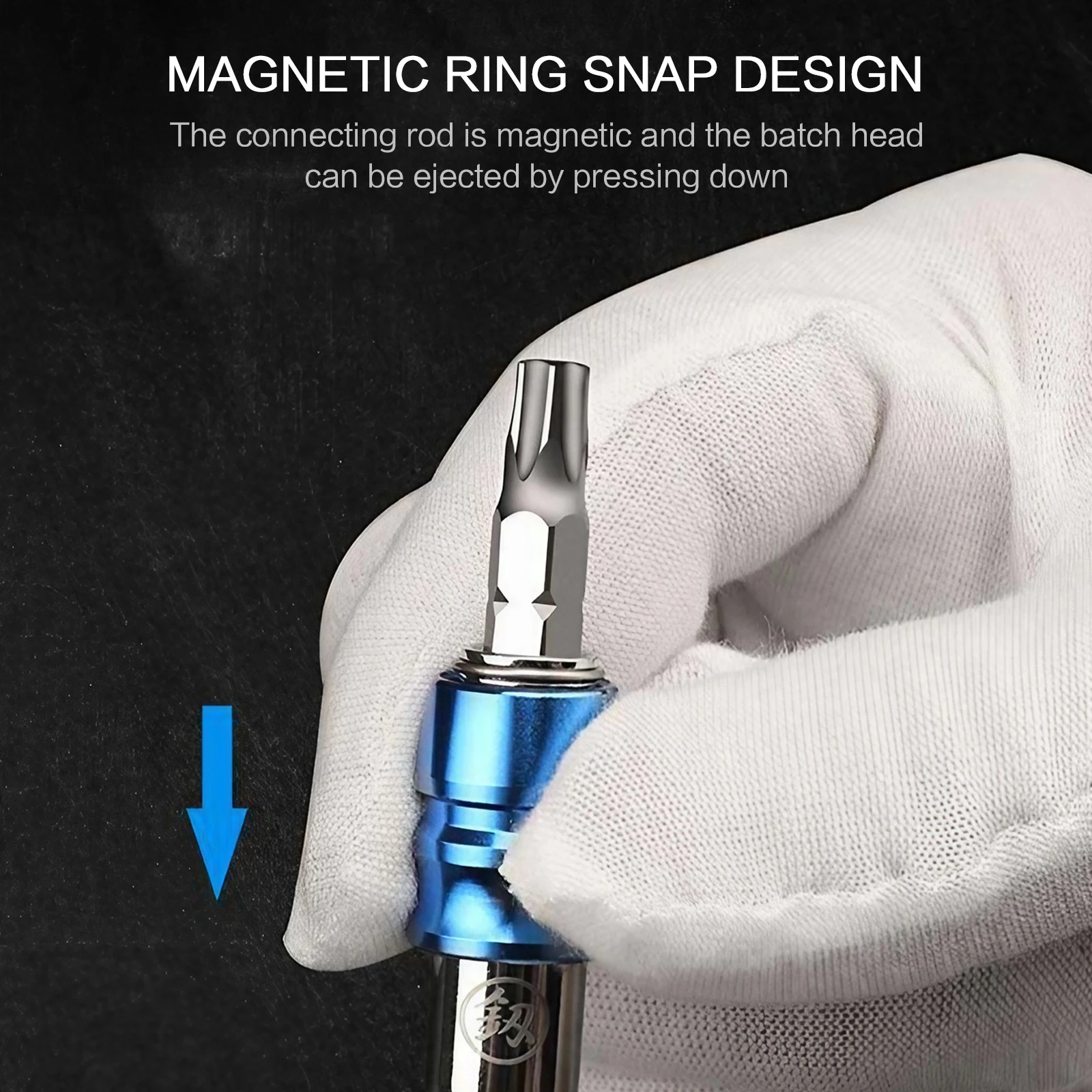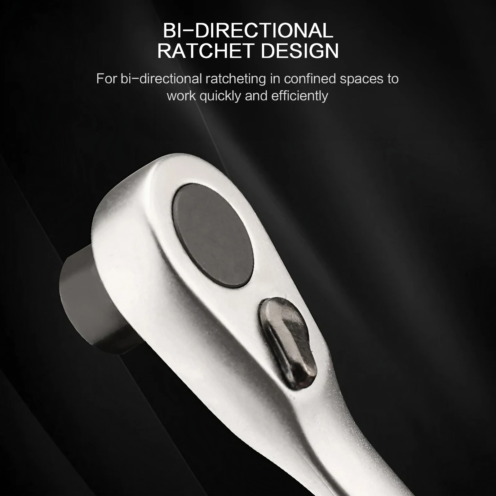 The ratchet wrench features a built-in strong magnet that securely holds the bits in place, preventing drop-offs during use for a smoother workflow.