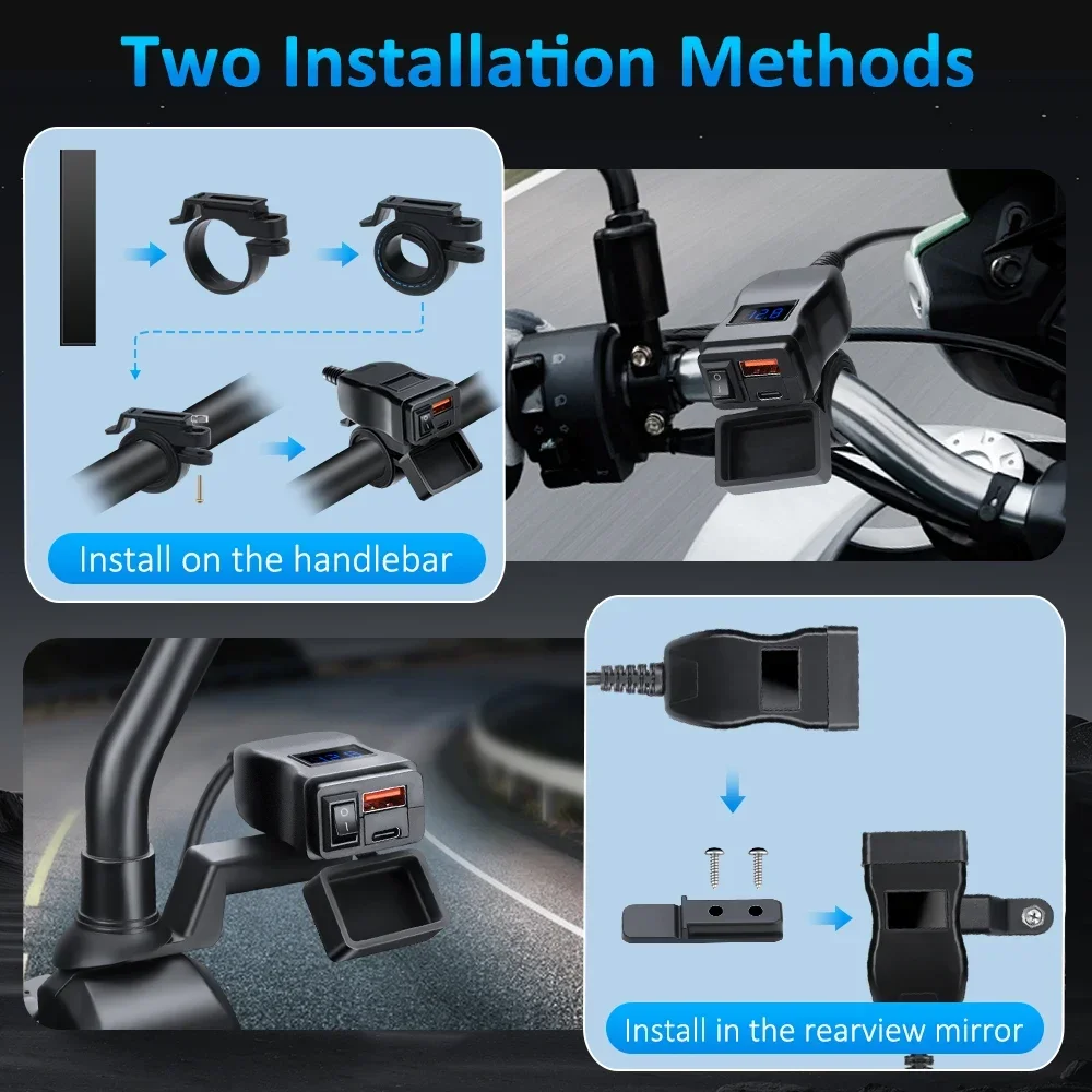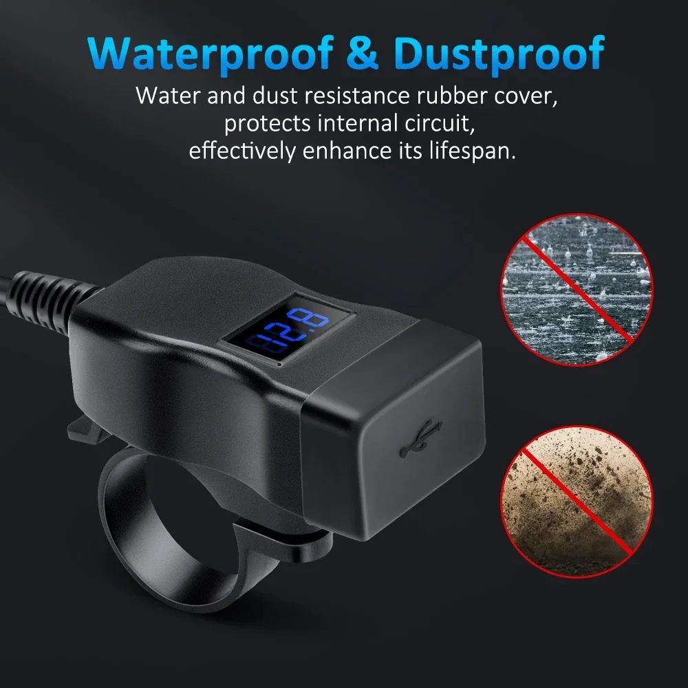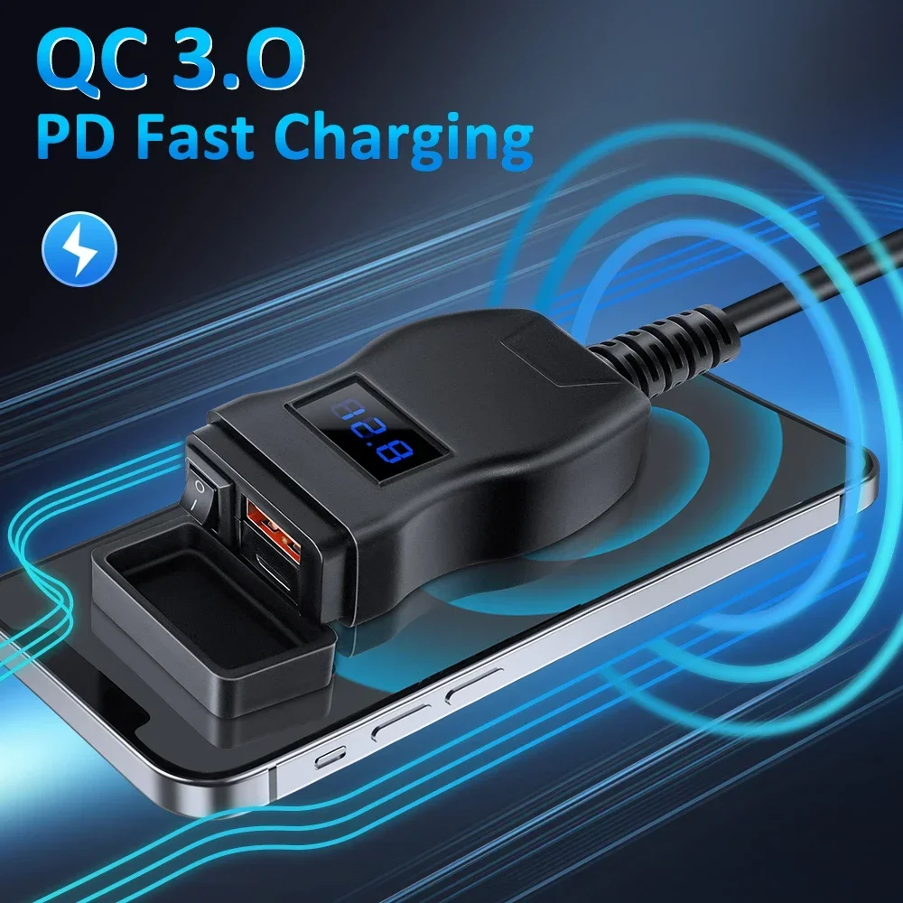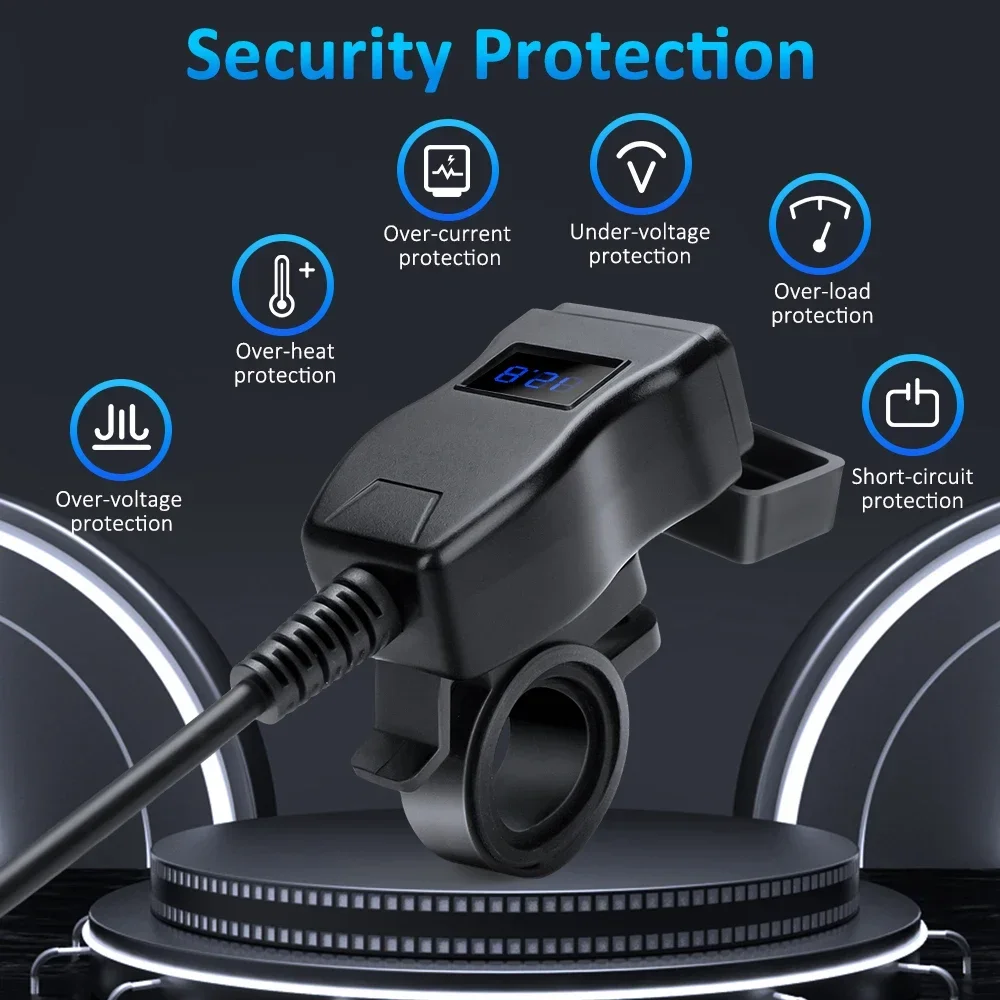 Extractme Motorcycle Usb Fast Cellular Charger Waterproof Type C Port Socket Connector With Cell Mobile Voltmeter Digital Charger Moto Accessory