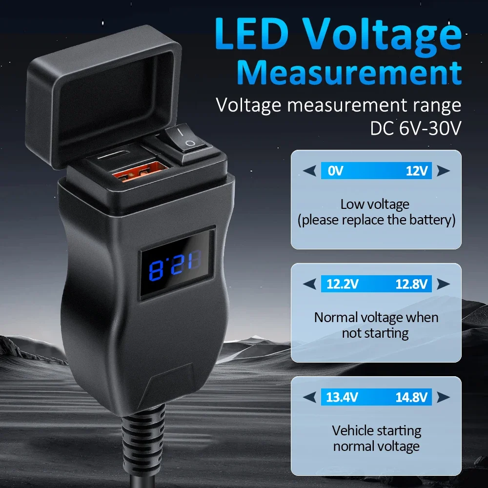 PD QC3.0 Motorcycle USB Fast Cellular Charger Waterproof Type C Port Socket Connector With Cell Mobile Voltmeter Digital Charge