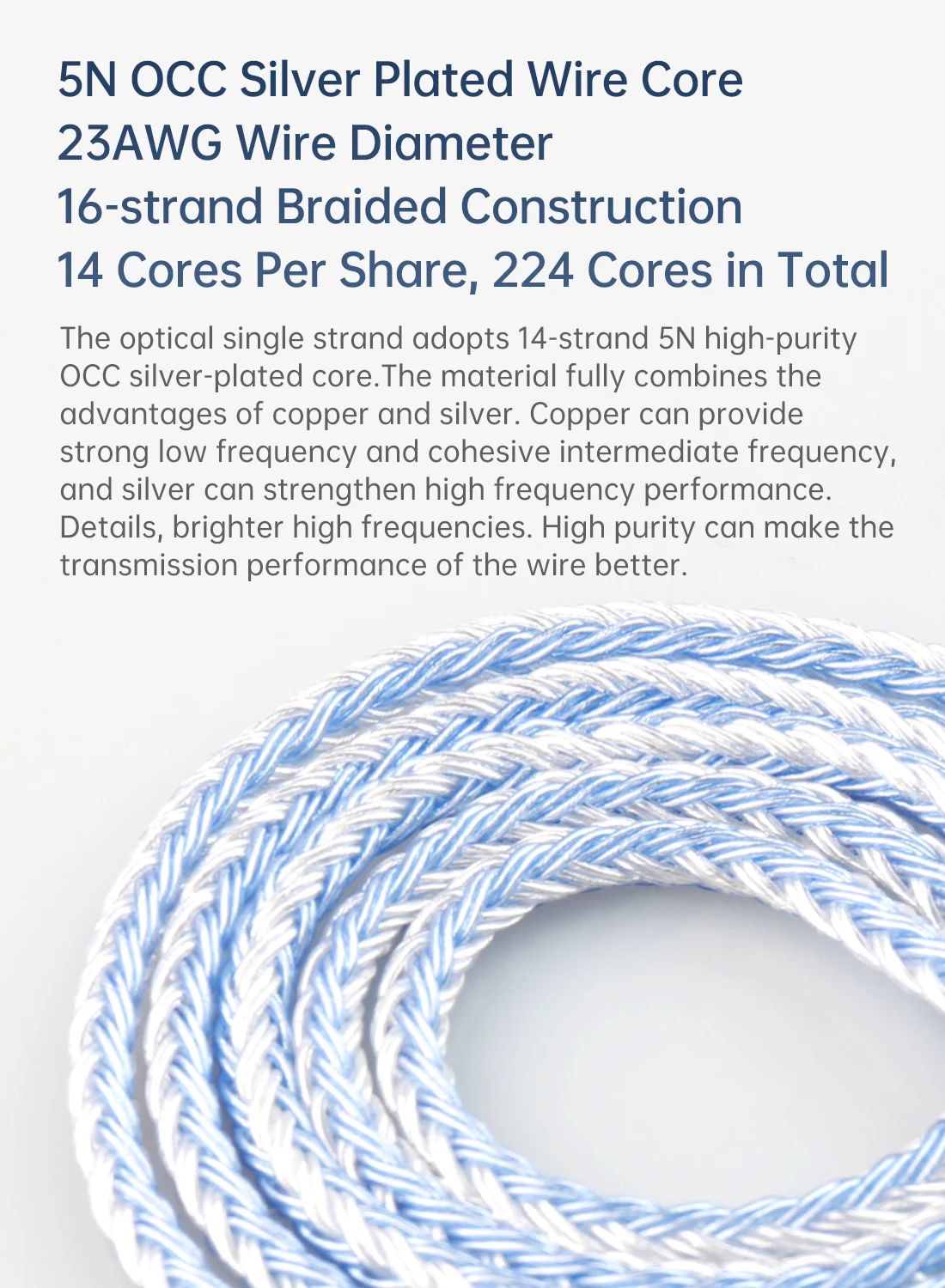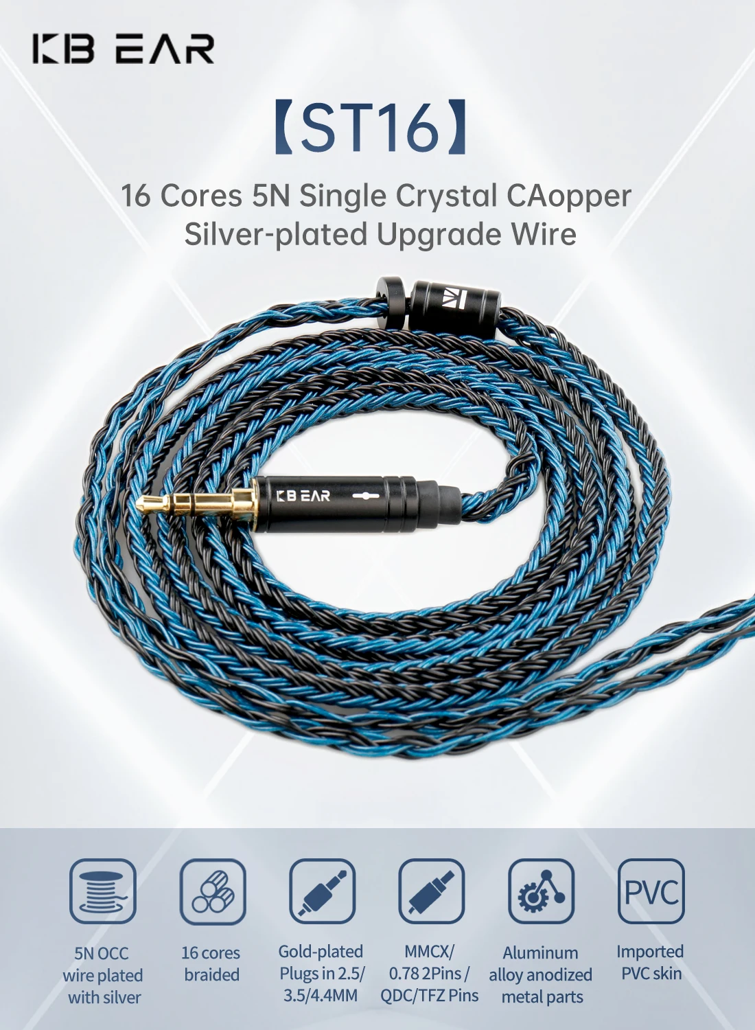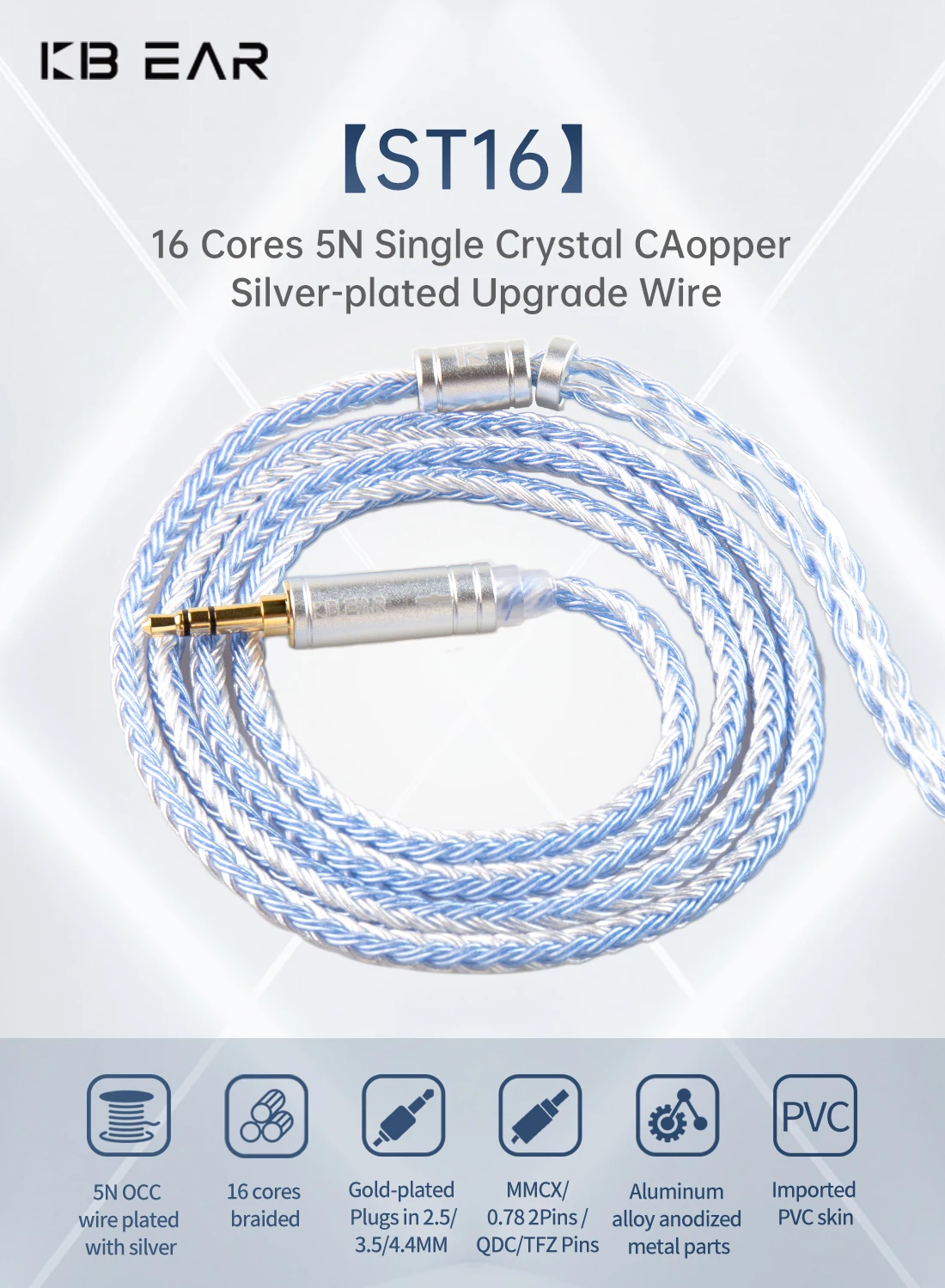 KBEAR ST16 Crystal 16 Cores Upgrade Cable 5N Single Copper Silver-plated 2PIN/MMCX/QDC Earbuds Connector For KS1 Star River Lark