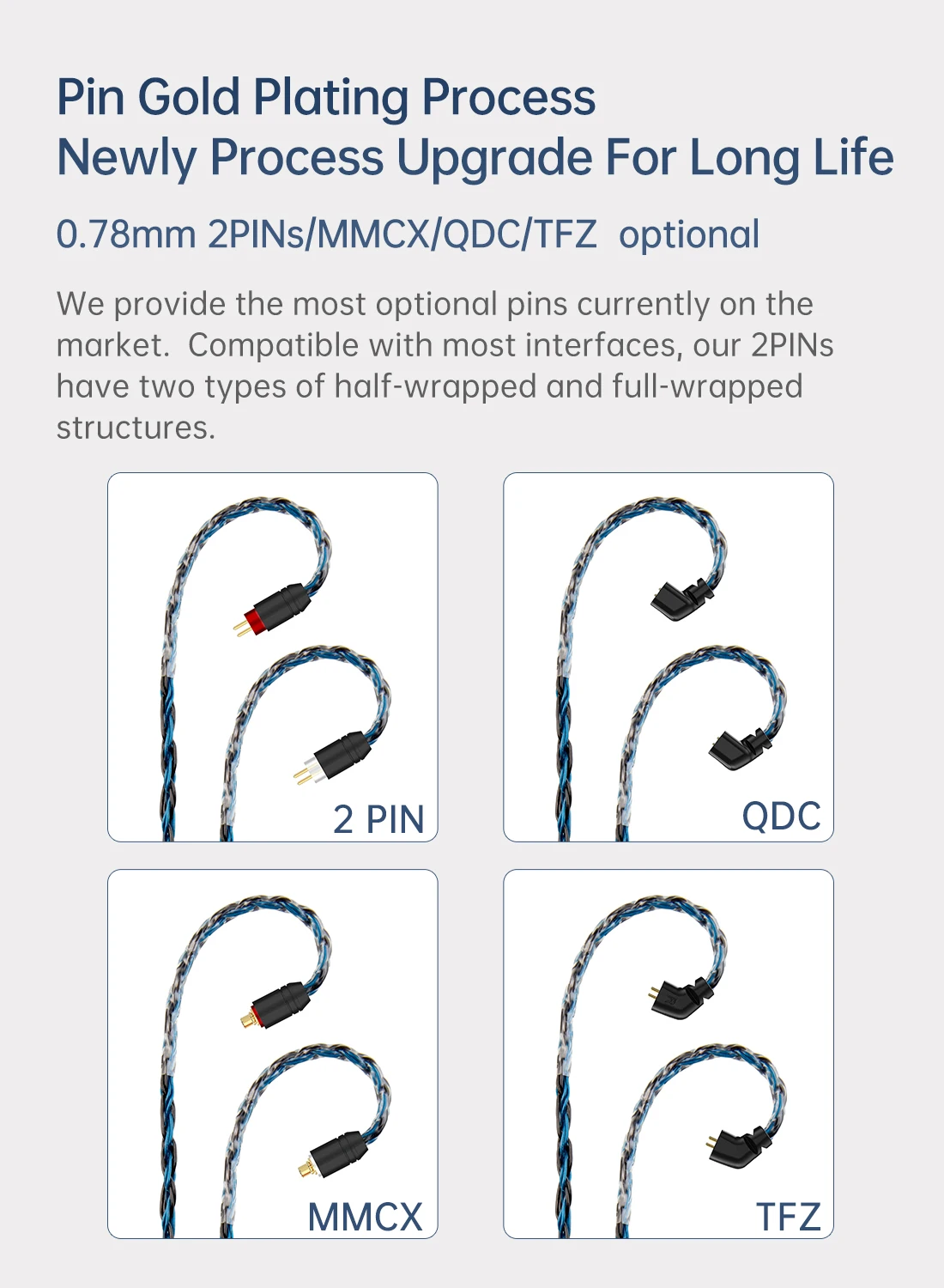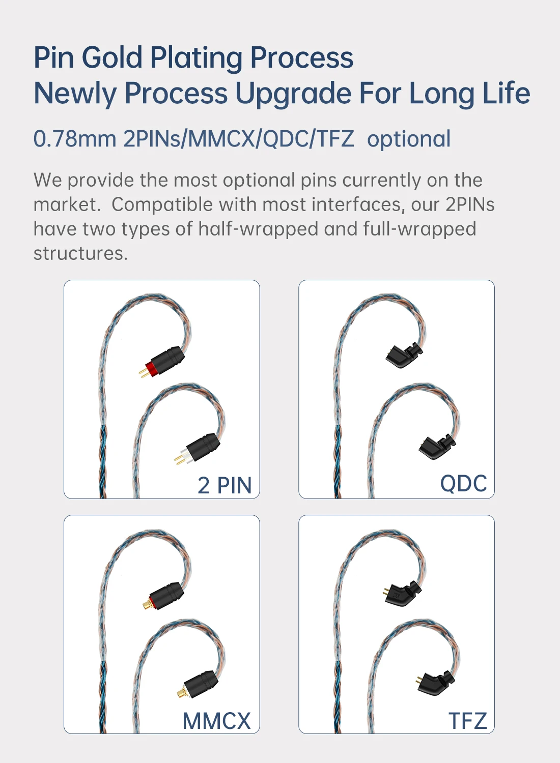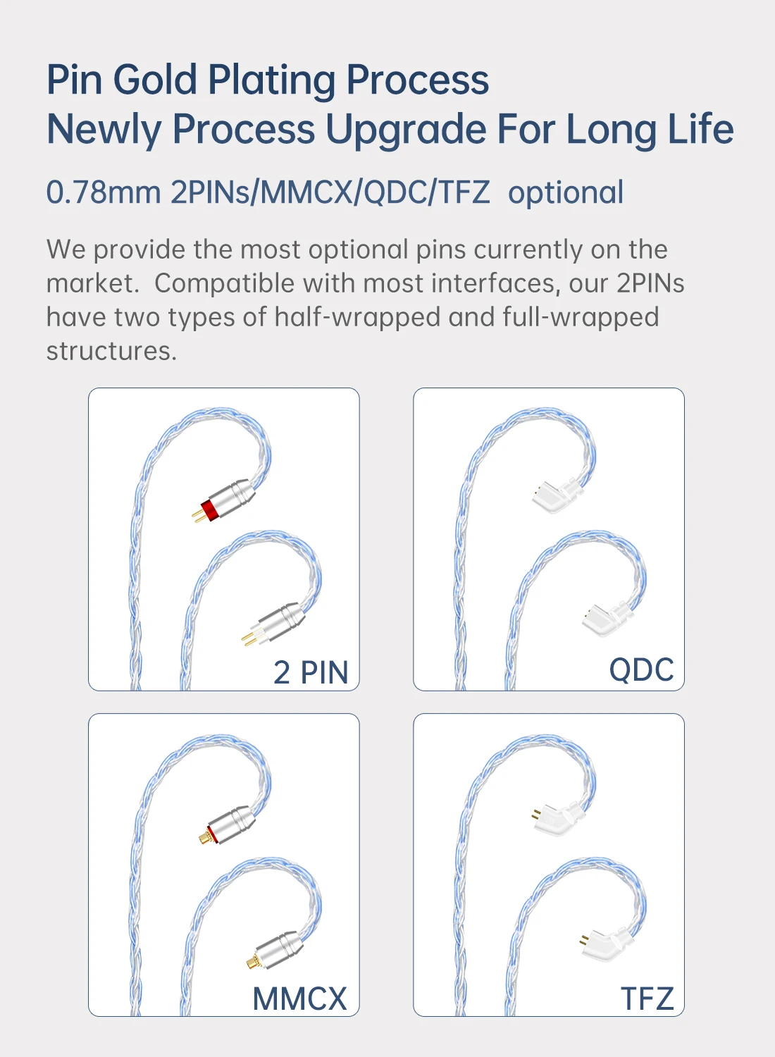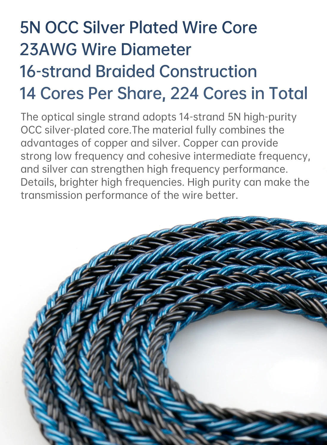 KBEAR ST16 Crystal 16 Cores Upgrade Cable 5N Single Copper Silver-plated 2PIN/MMCX/QDC Earbuds Connector For KS1 Star River Lark
