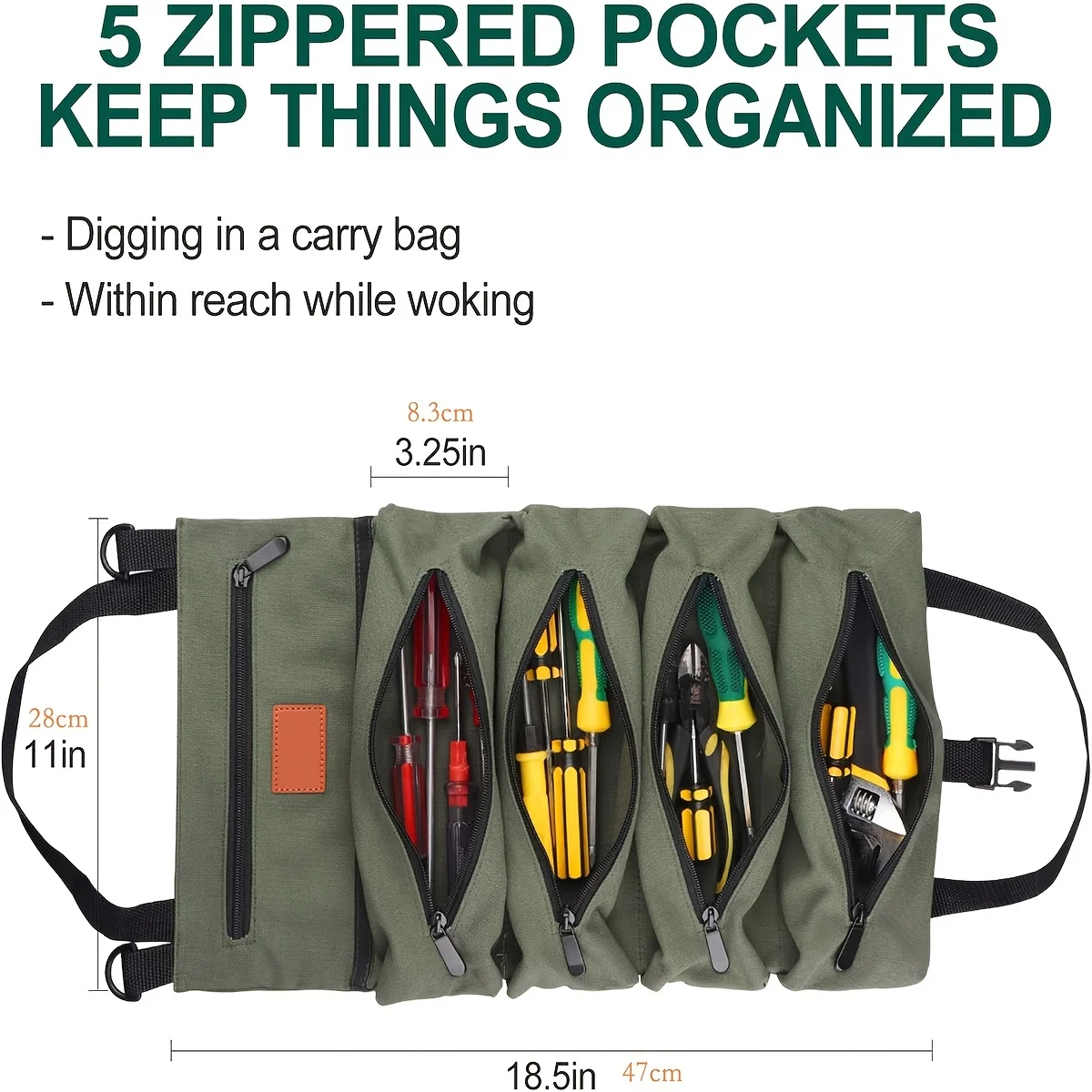 Tool Roll,Multi-Purpose Roll Up Tool Bag,Wrench Roll,Canvas Tool Organizer Bucket,Car First Aid Kit Wrap Roll Storage Case