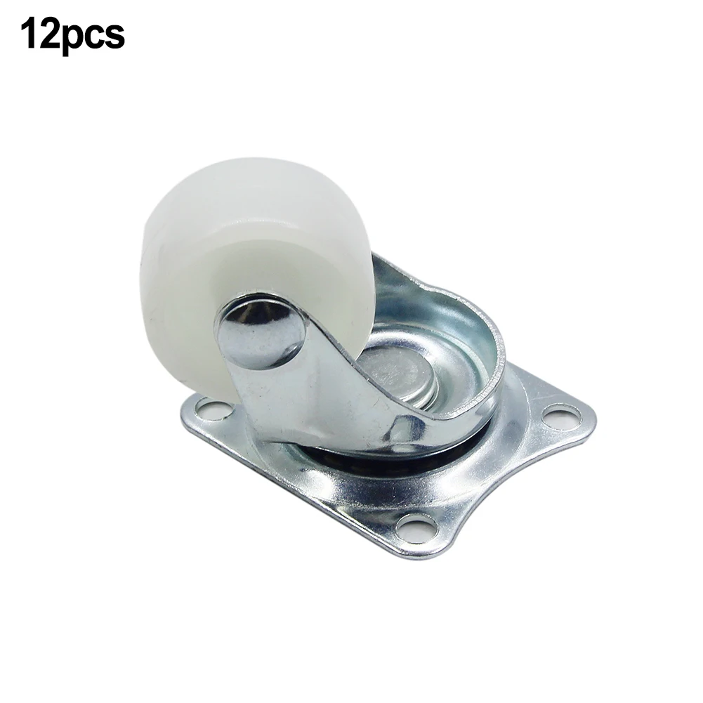 - Package content: 12 caster sets including screws. Color: White, Silver Tone