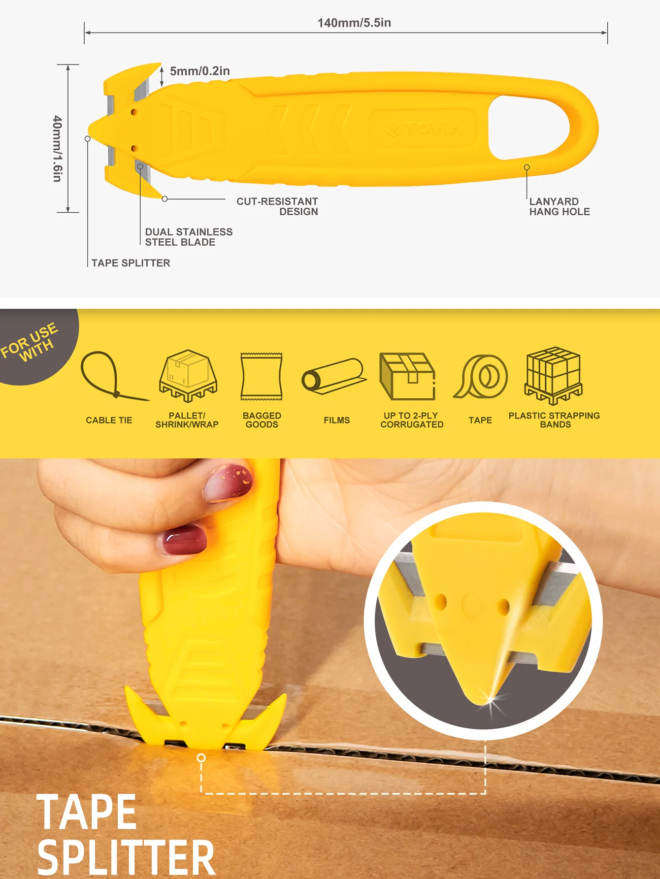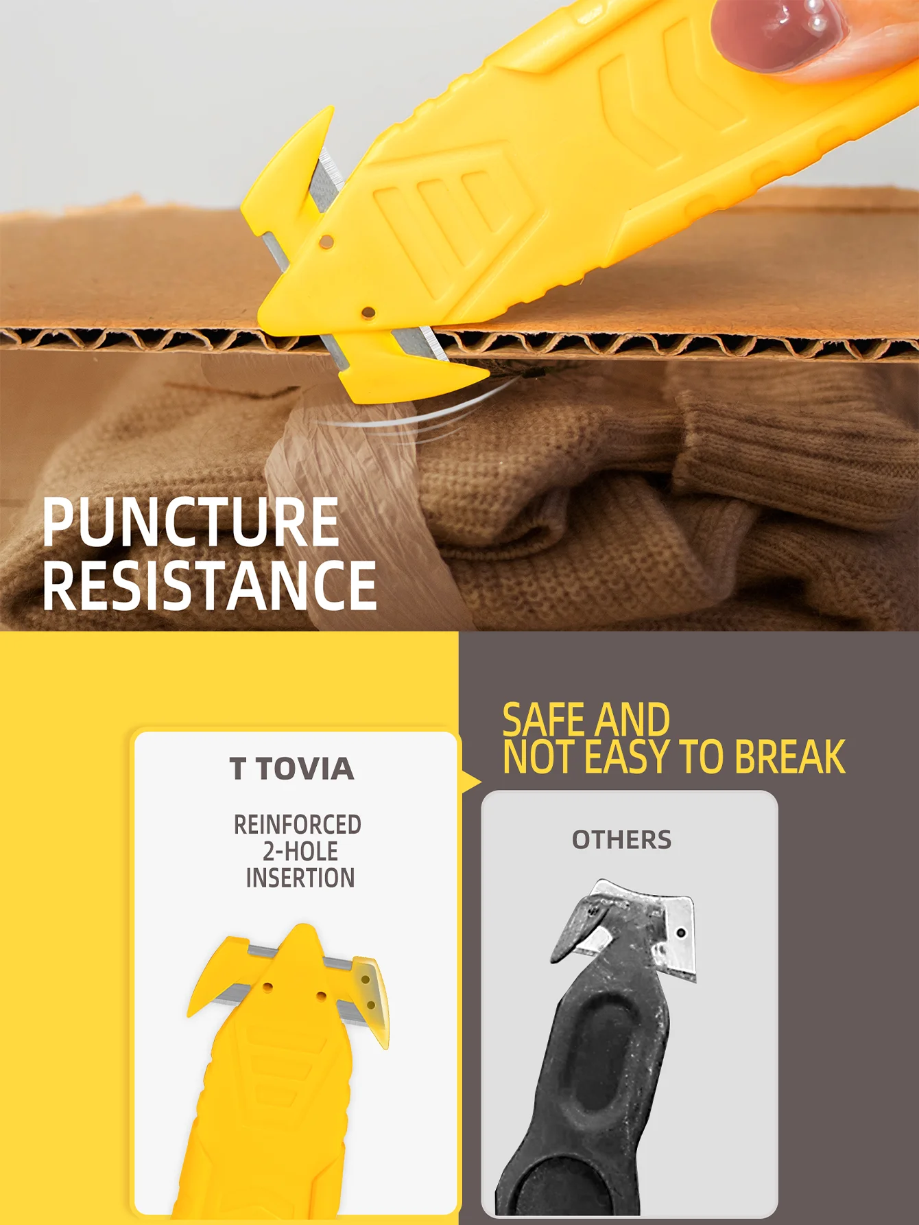 T TOVIA Box Opener Double-sided Blade Safety Box Cutter Utility Knife Parcel Package Tape House Office Security Knife Tools