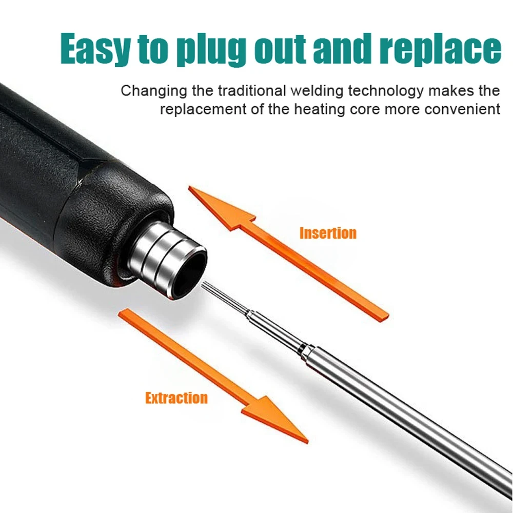 【Fast Warming】: The plugs-and-plays design of soldering iron bit, fast heat conduction, antioxidant, and long lifespan. The integrated design of the soldering iron bit and heating element makes the temperature rise quickly, the solder warms up quickly, and the replacement of the heating element is more convenient.