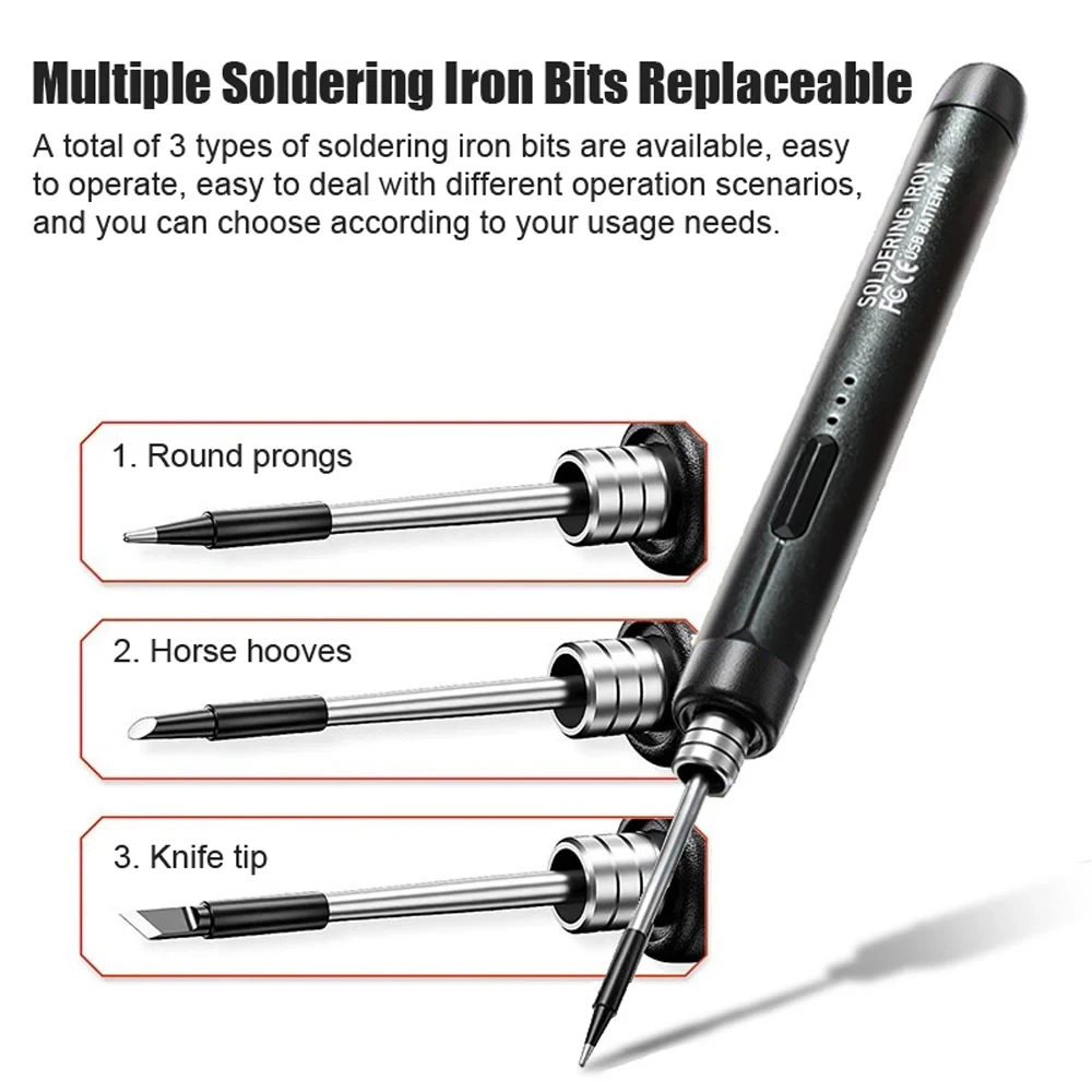 【Multiple Soldering Iron Bits Replaceable】: A total of 3 types of soldering iron bits are available, easy to operate, easy to deal with different operation scenarios, and you can choose according to your usage needs.
