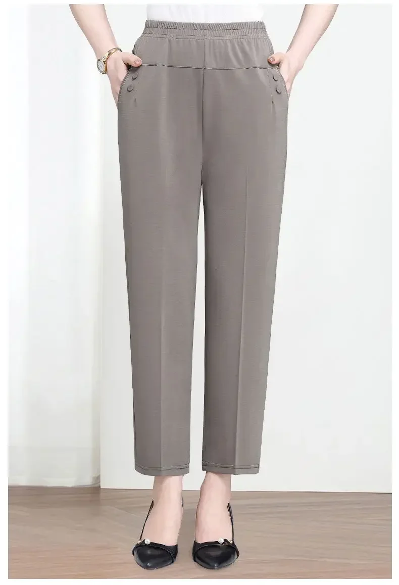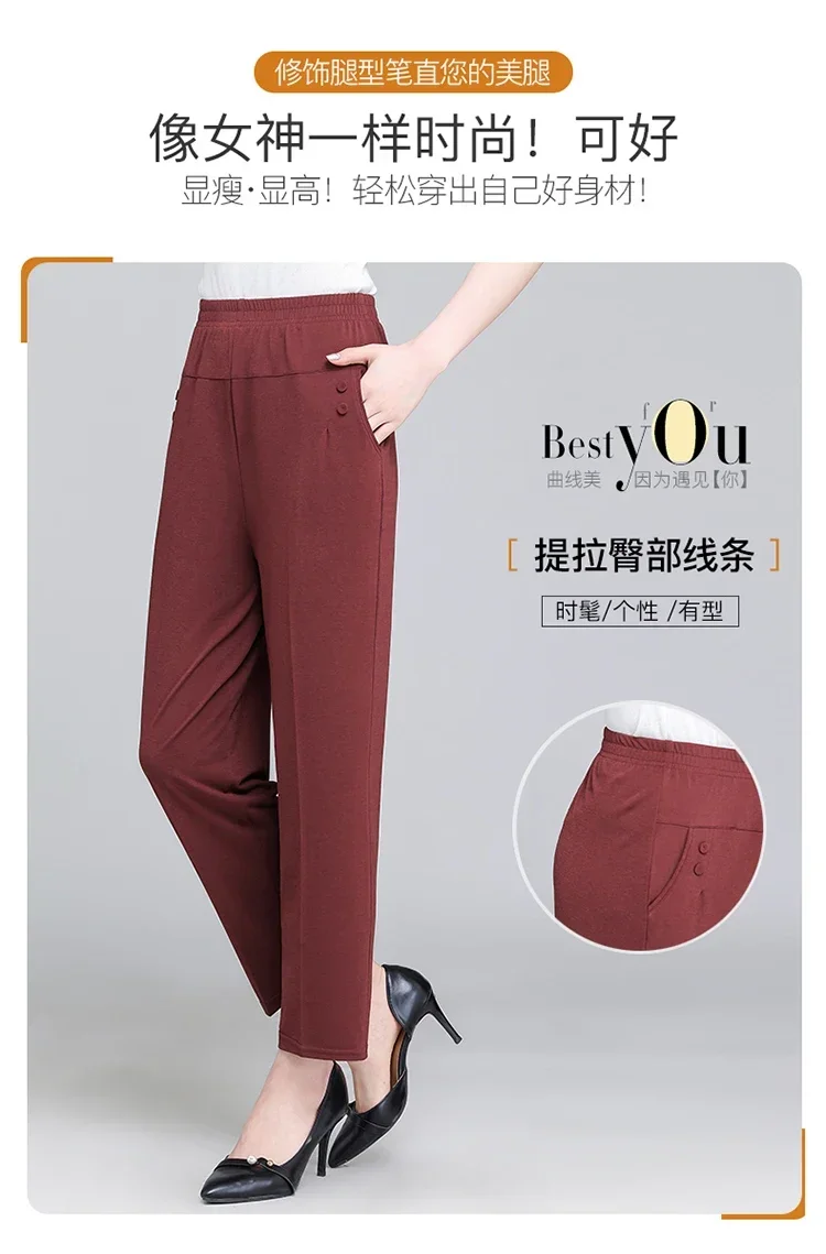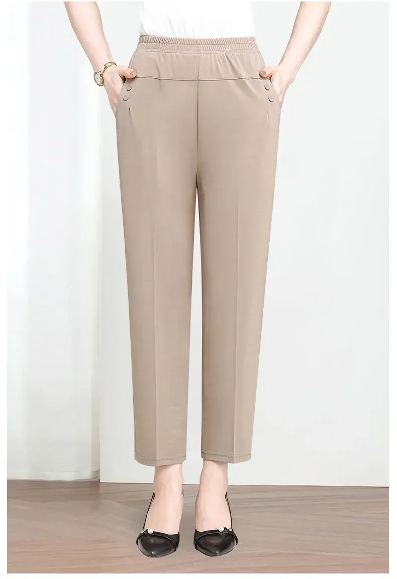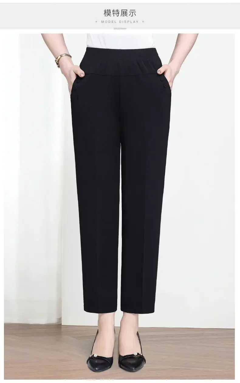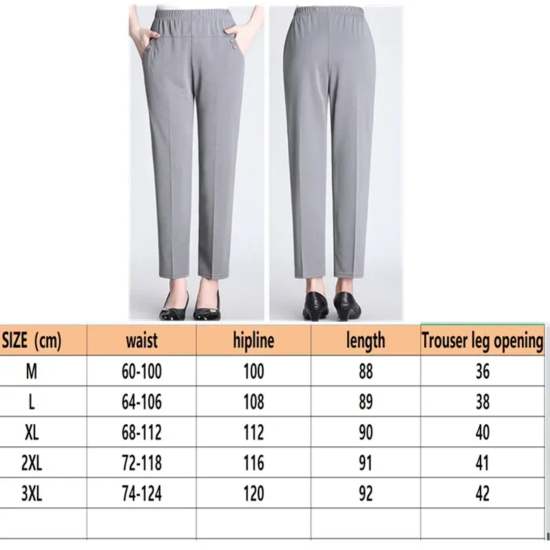 2022 Middle Aged and Old Women Spring Summer Pant Thin Elastic Waist Loose Cotton Mother Long Casual Trousers Plus Size M-3XL