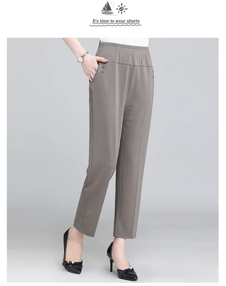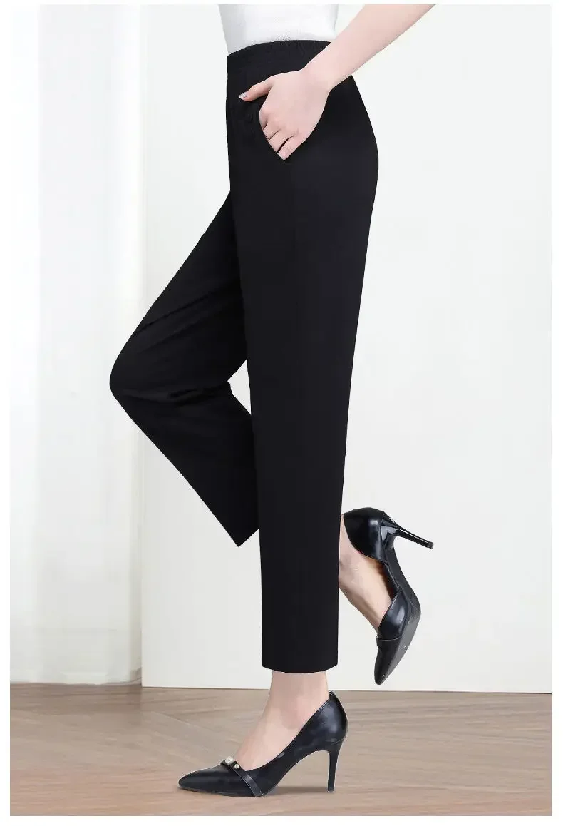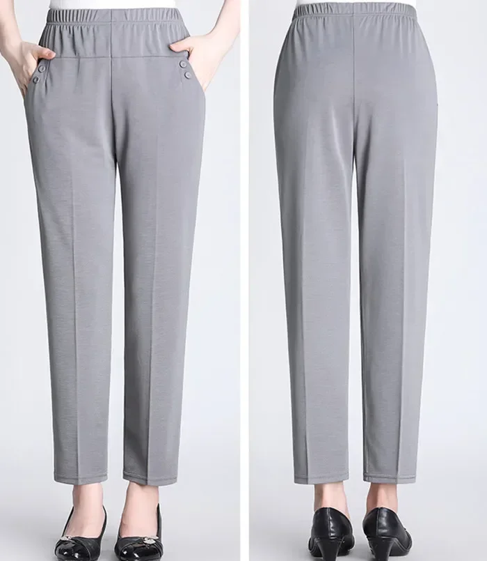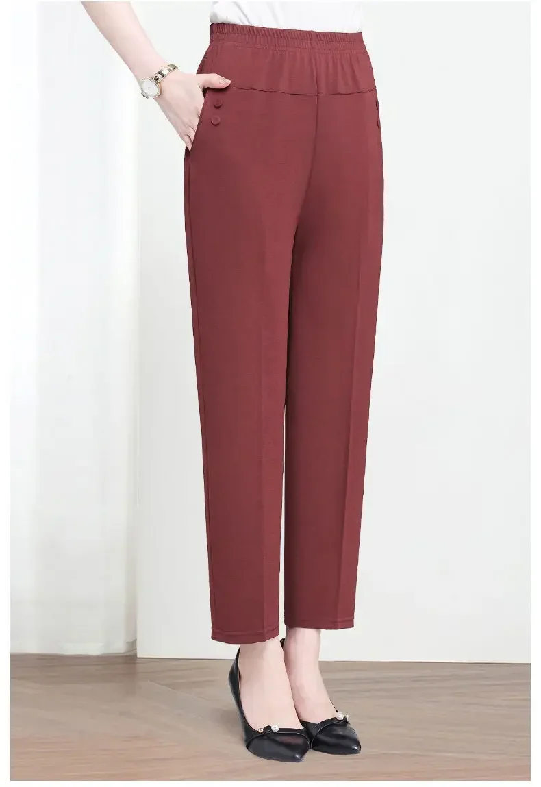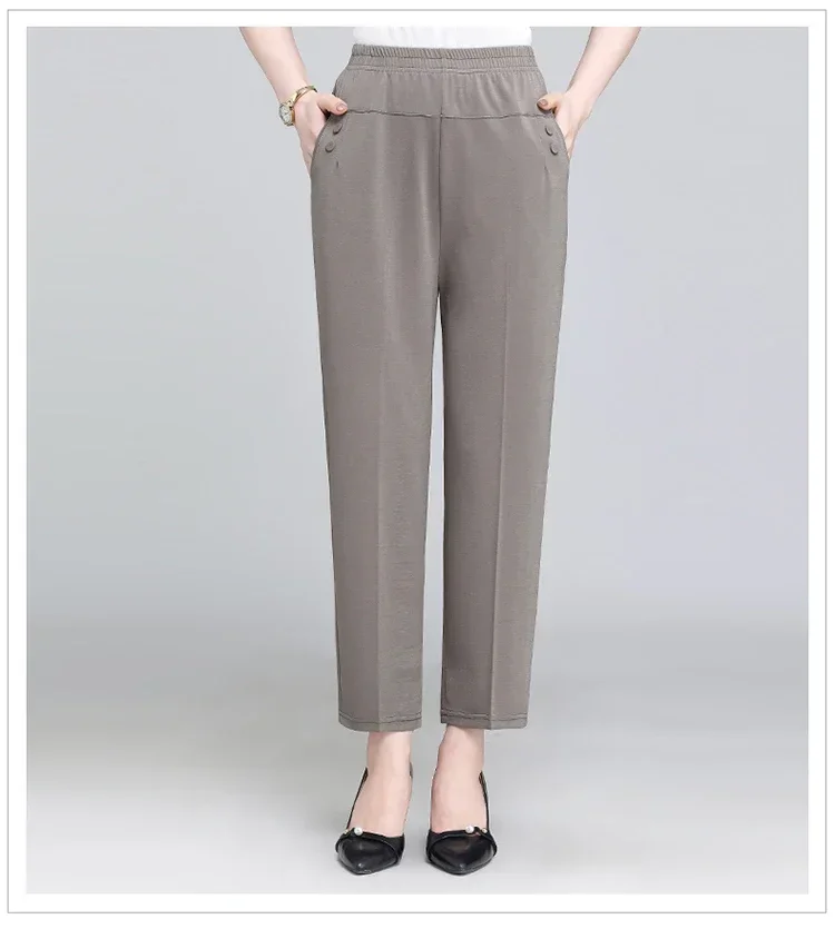 2022 Middle Aged and Old Women Spring Summer Pant Thin Elastic Waist Loose Cotton Mother Long Casual Trousers Plus Size M-3XL