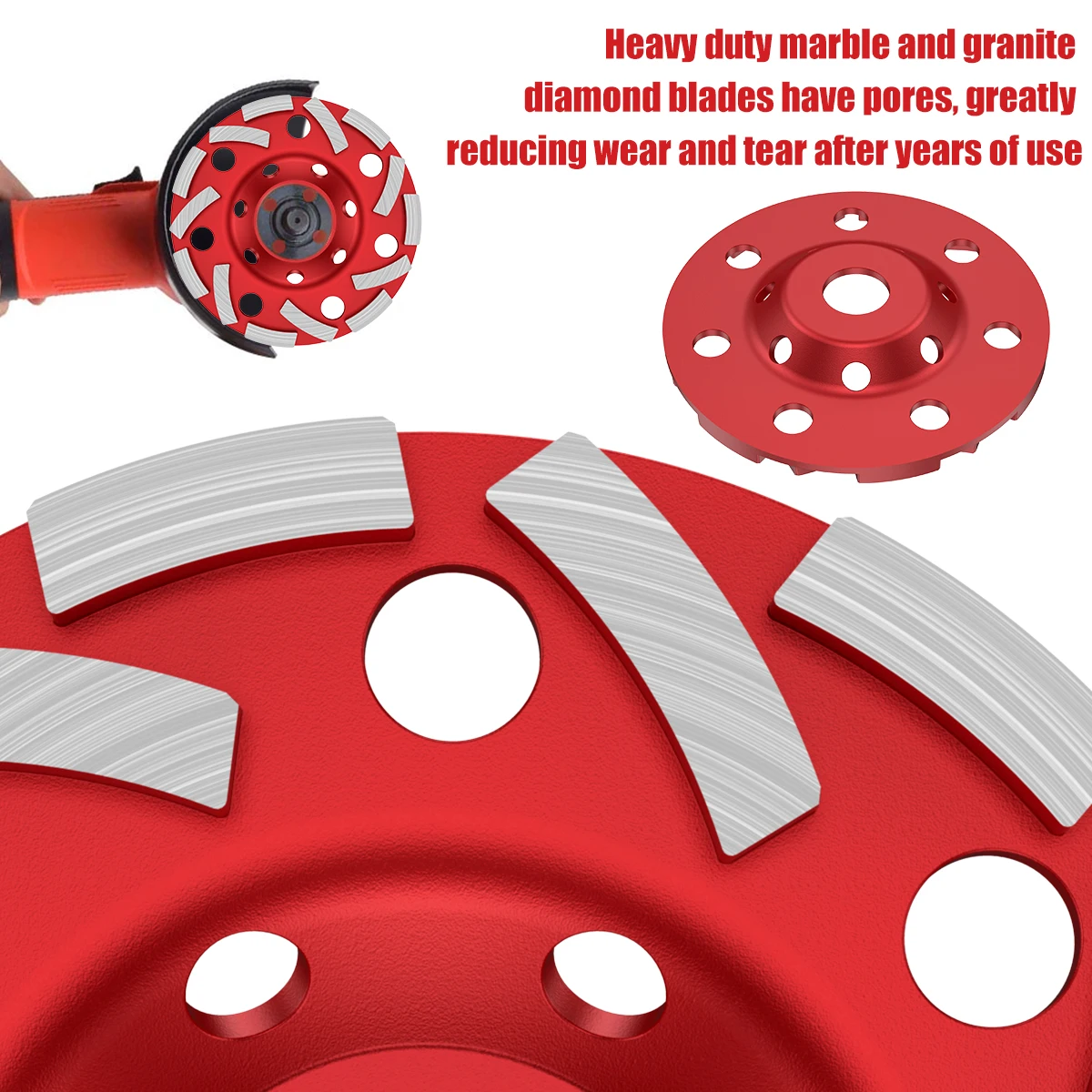 [Rapid Heat Dissipation] Diamond grinding disc has many holes which helps dissipate heat and remove debris, keeps the body cool and ensures smooth cutting, reduces wear and extends its service life.