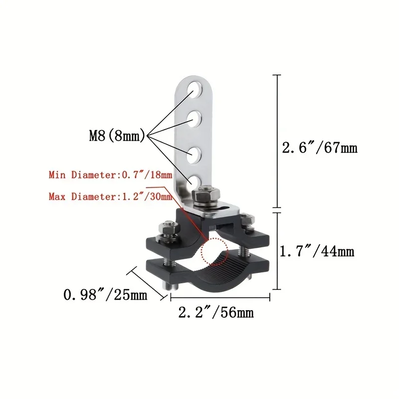 1. Material: aluminum alloy2. Suitable for: 0.7''-1.2'' diameter pipe3. Item Model: mount bracket tube clamps for led light4. 100% brand new5. Apply to most off road vehicles, automotives, trucks, boats, farm vehicles, construction vehicles, ATV, UTV, motorcycle etc.6. Package: 2 pieces