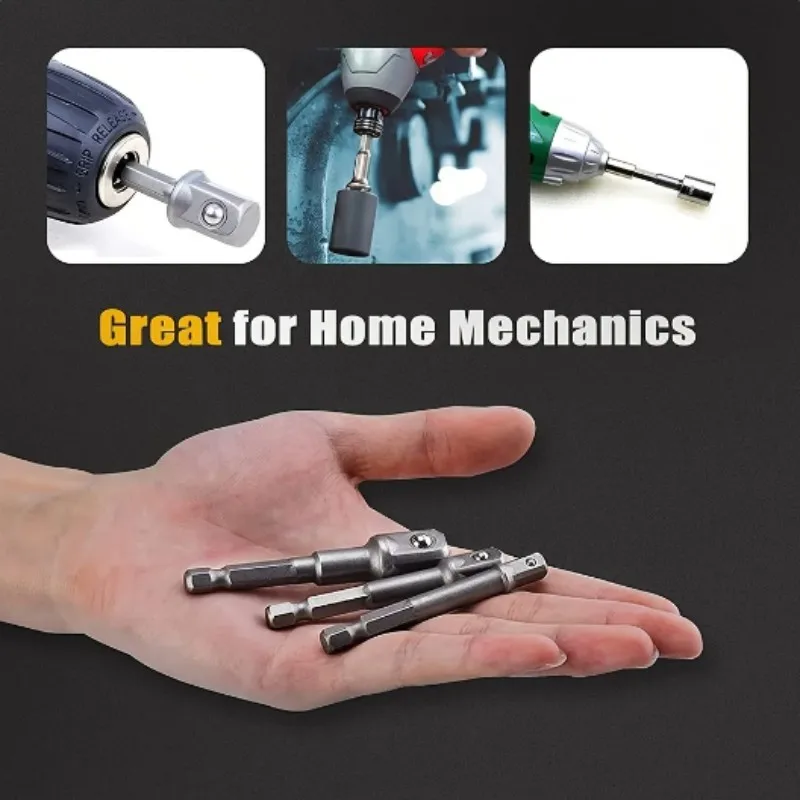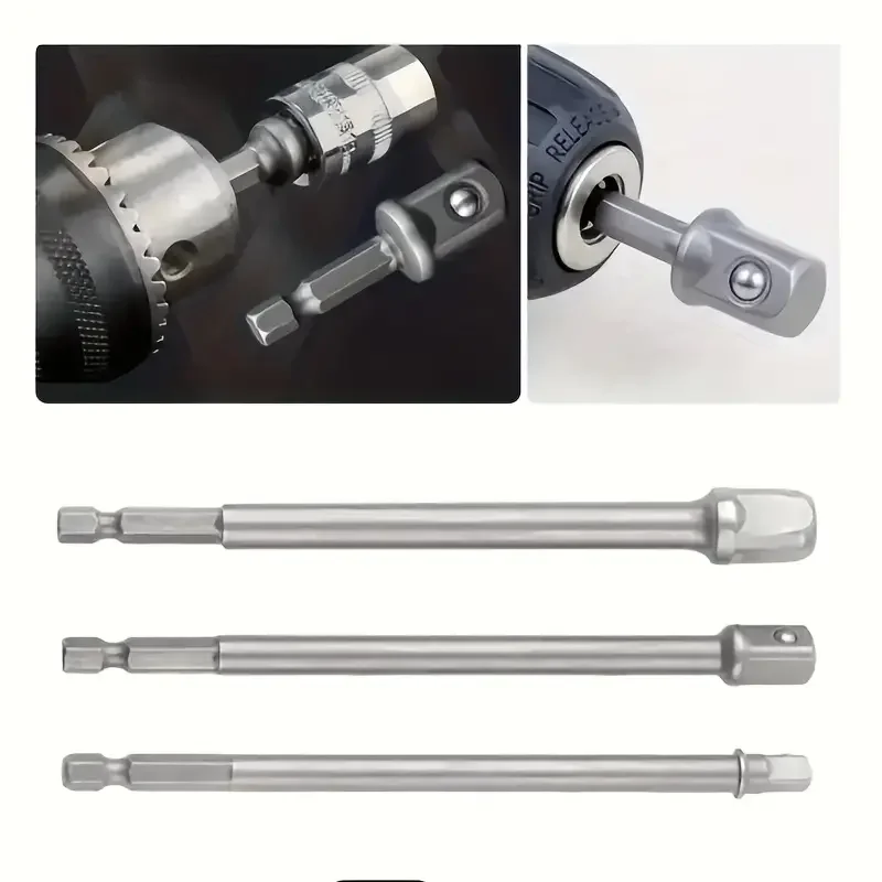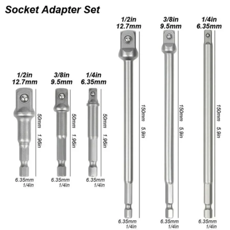 6Pcs/Set 1/4" 3/8" 1/2" Hex Power Drill Bit Driver Socket Wrench Adapter Extension Bar Bit For Electric Screwdriver Bits