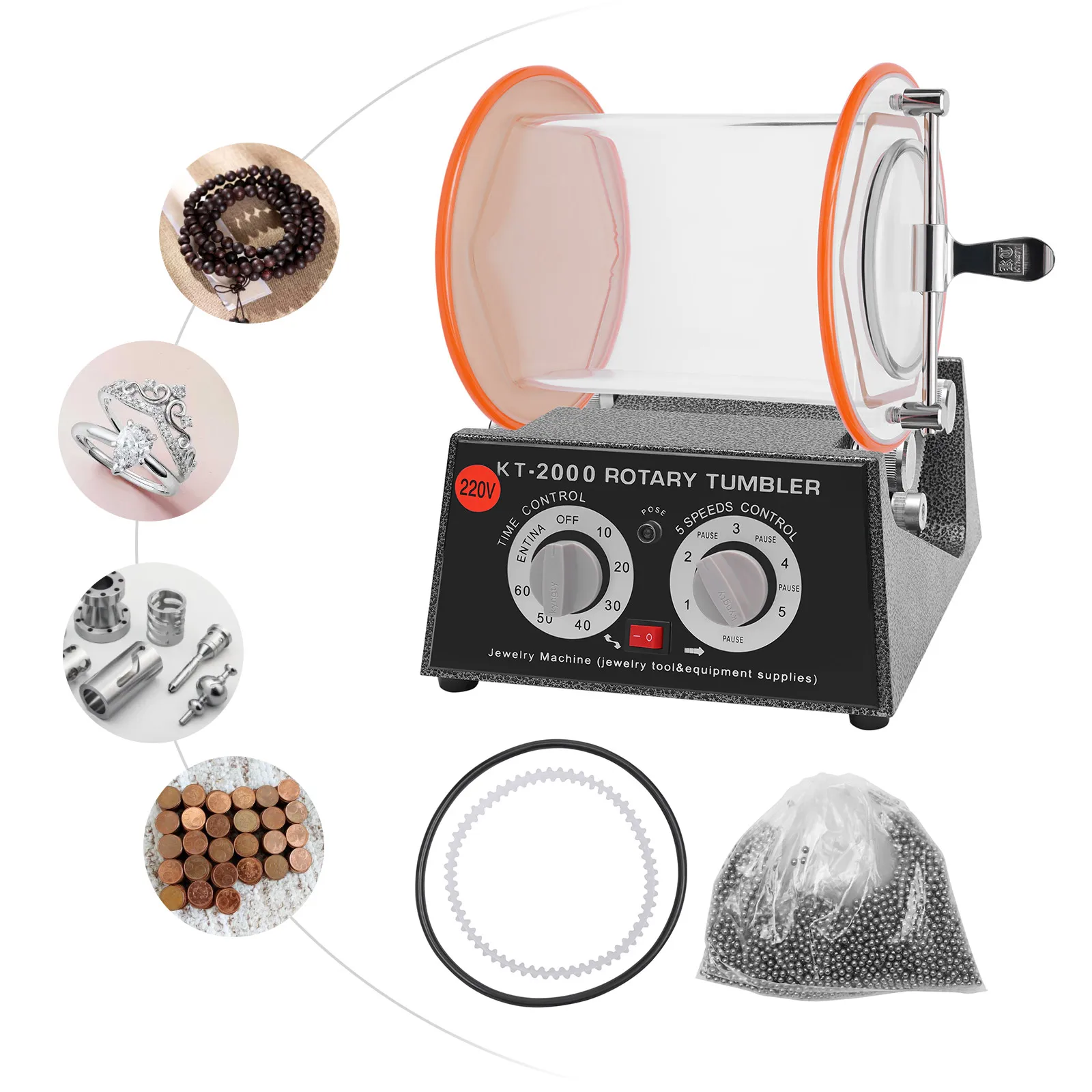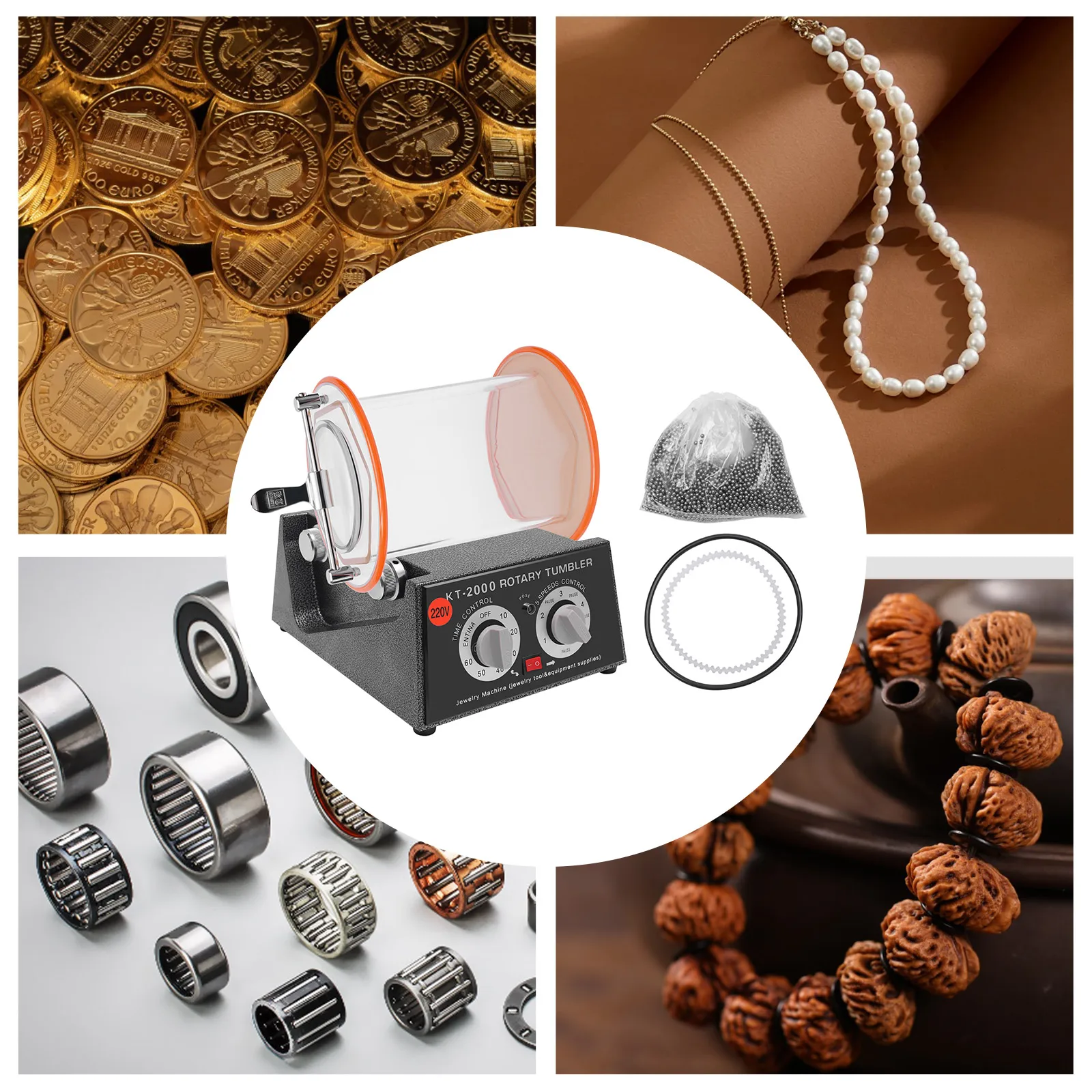 Rotary tumblers polish coins, clean cartridges, brass and other metals(It's just that some abrasives are different. Such as jade, it is impossible to use steel ball