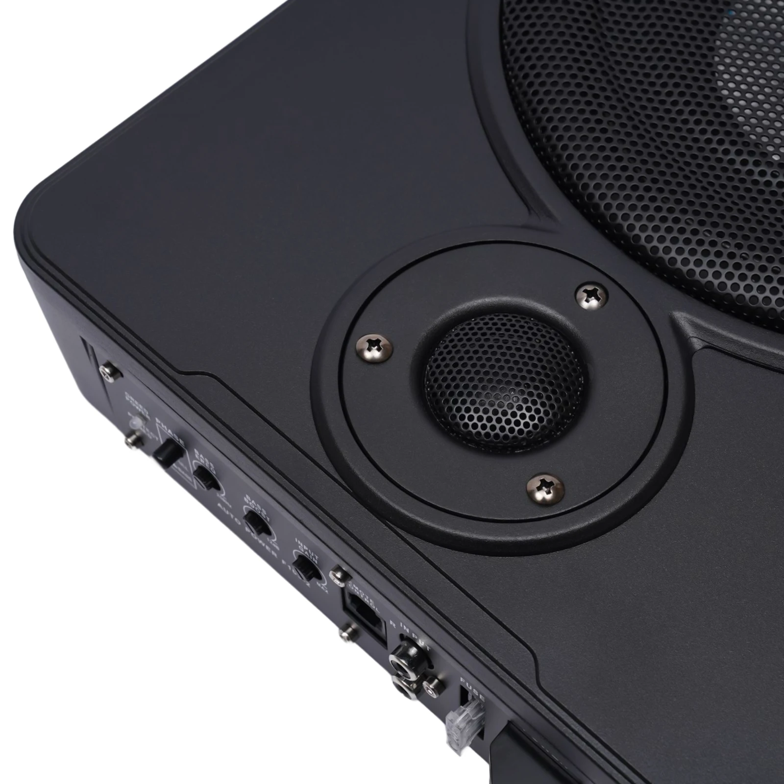 This product is a car audio modified subwoofer 8 inch shock with high-pitched active speakers with amplifier subwoofer. The 68mm thin section can be mounted directly under the co-pilot seat. Excellent low-frequency performance, pure low music output, and sound effects.
