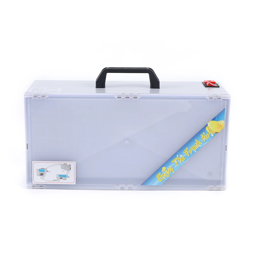 Two removable Fiberglass Filter Sponges and the Fan help to remove larger particles and fog effectively.
