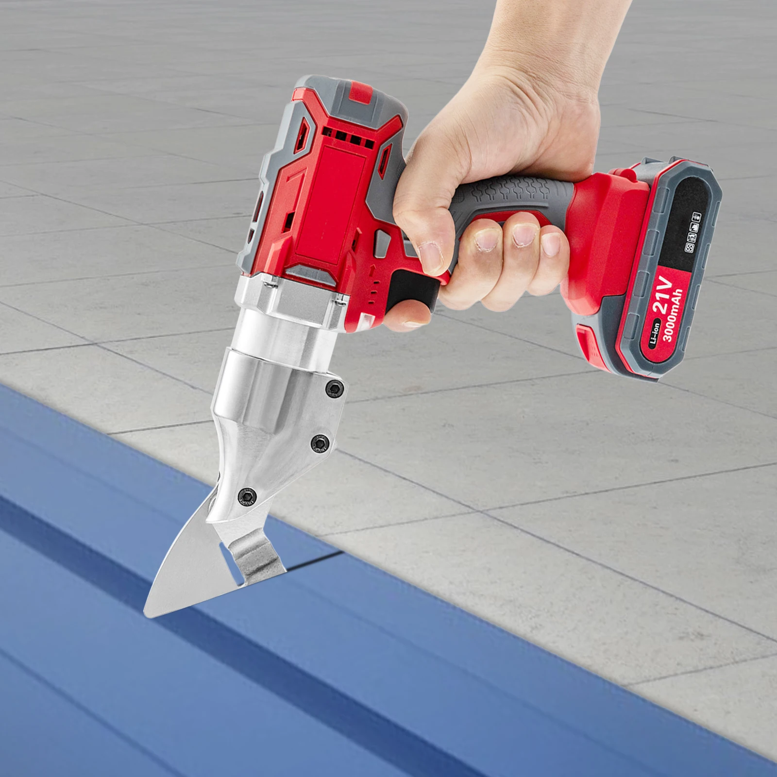 The 21V metal shear features a replaceable chrome vanadium steel cutter head for a smoother cut and longer life. The two-speed adjustment switch and the infinitely variable speed switch can make your cutting work more delicate. It also has a variety of protection, emergency brake function, and safety lock button design, which can provide you with a higher degree of security.
