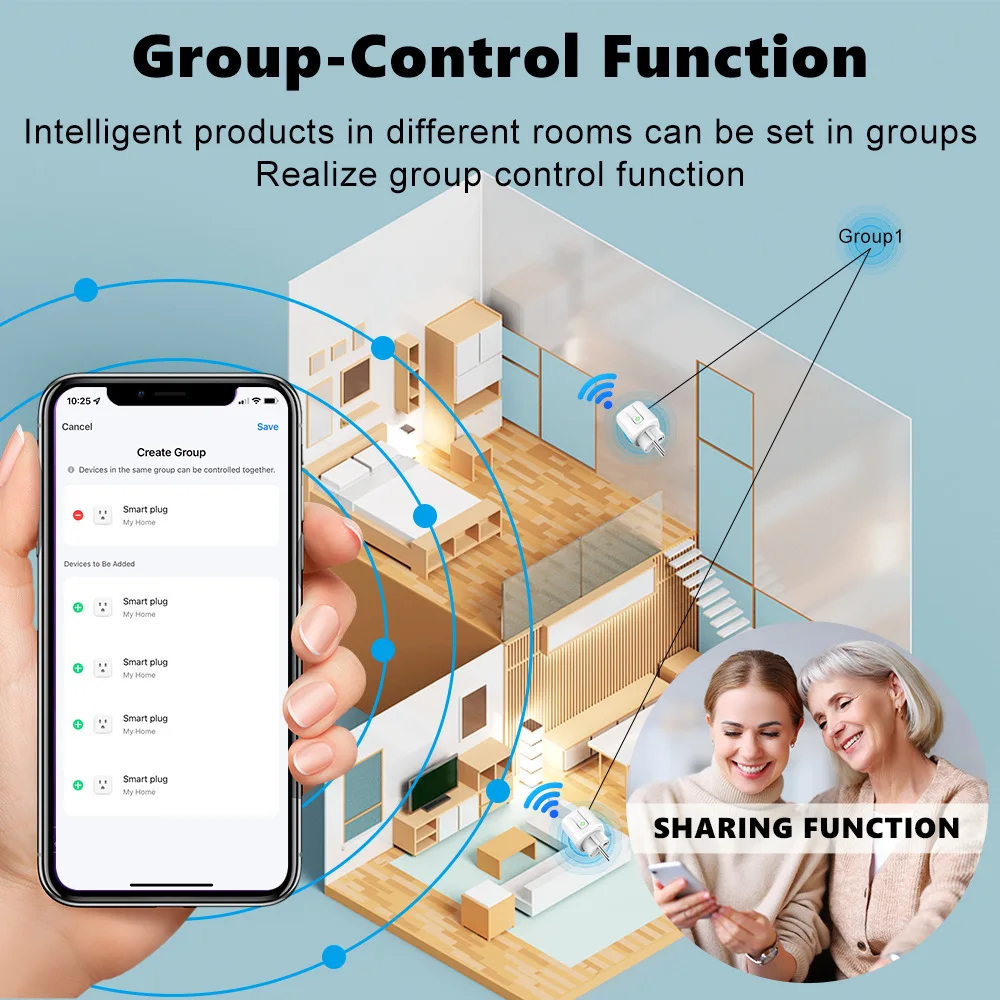 Schedule: Matte Smart Sockets Adjust the schedule and routine according to your needs via the app. Sign in with the same account as your family and the devices can be shared.