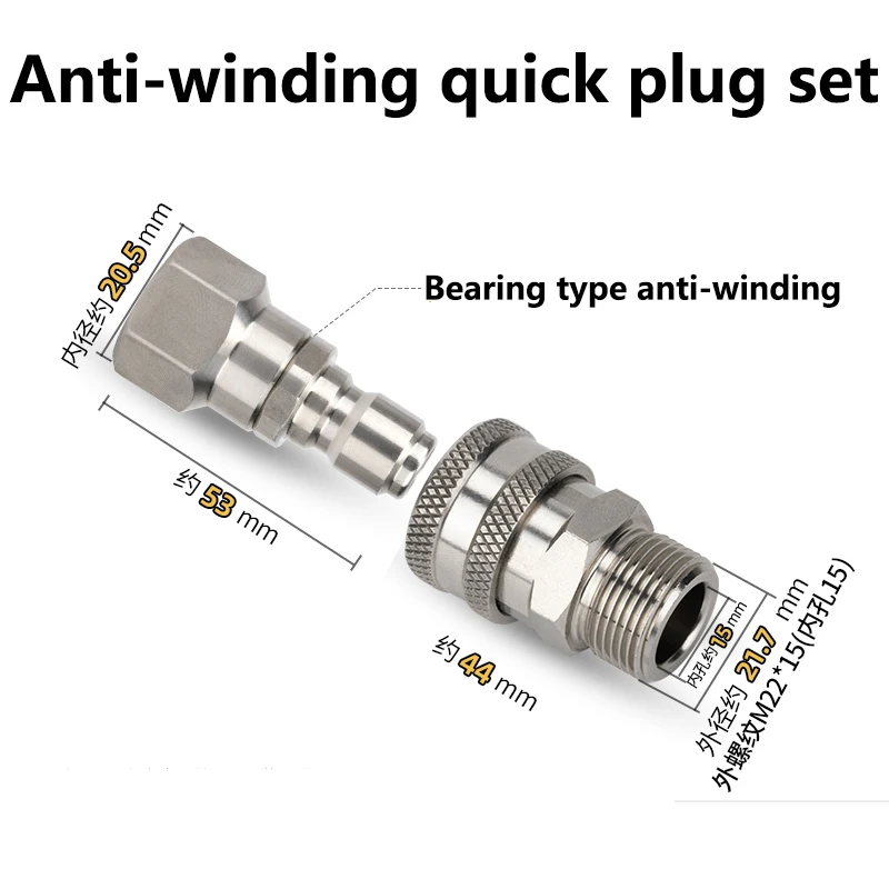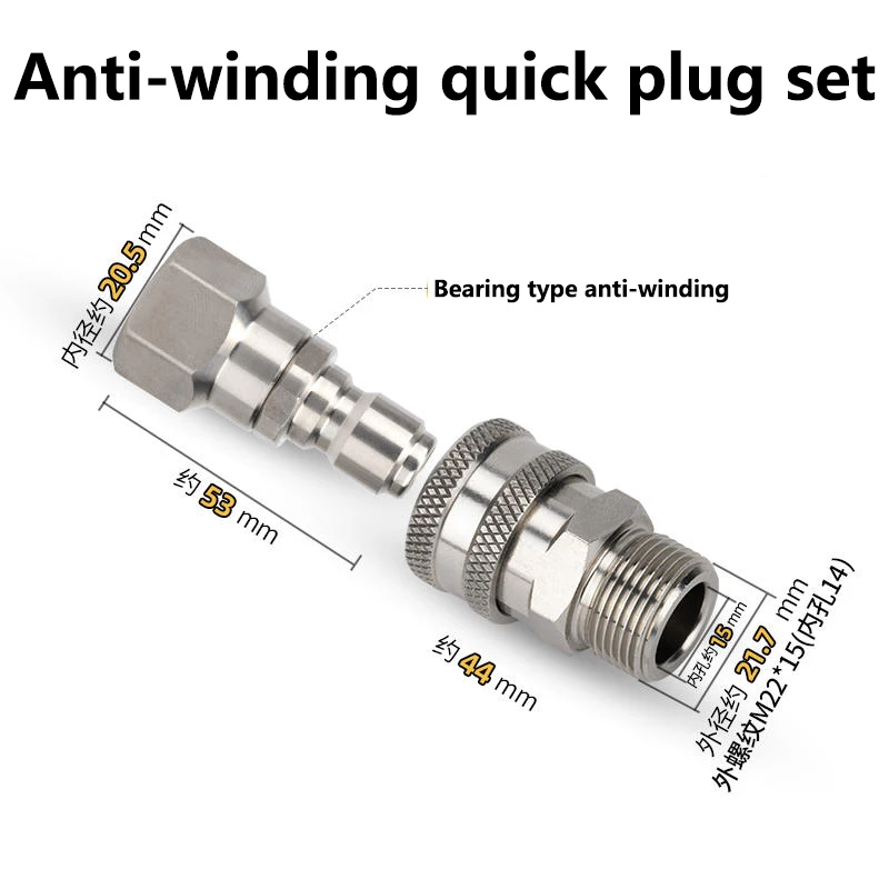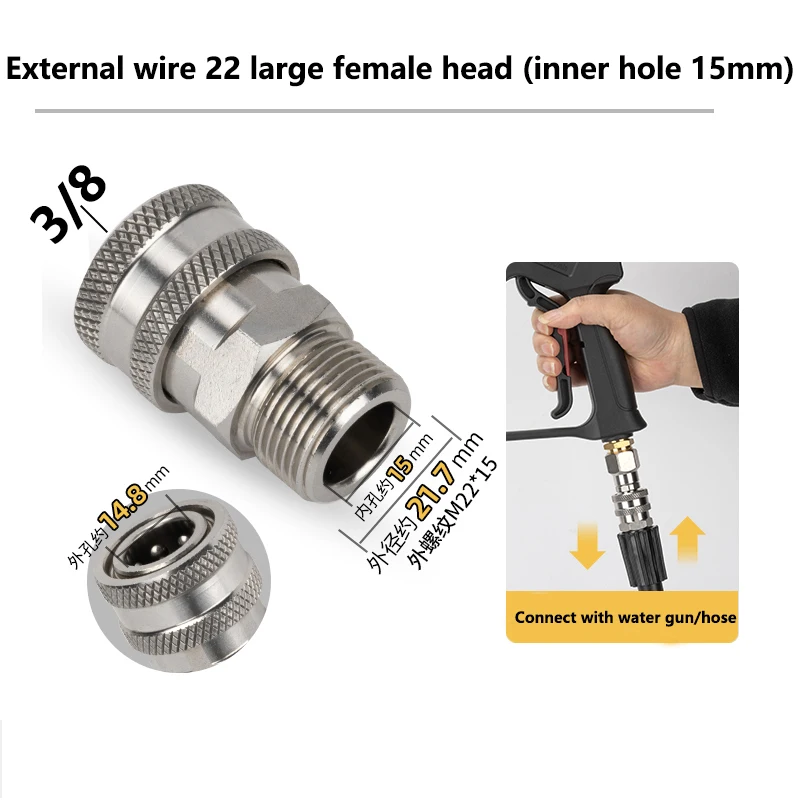 Tool Pressure Washer Swivel Adapter Stainless Steel M22 14mm or 15mm to 3/8 Quick Connect for Pressure Washer Hose 5000 PSI