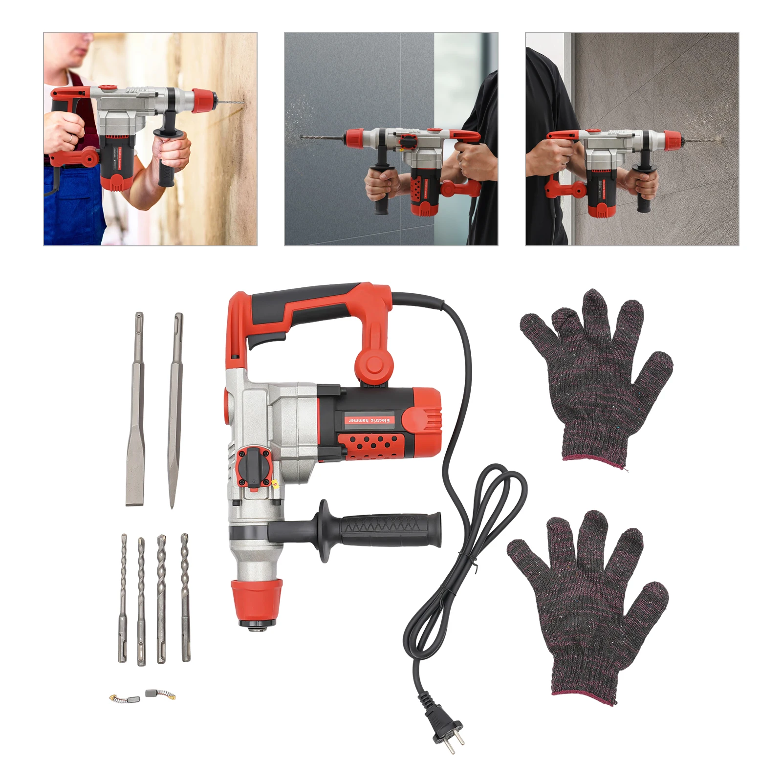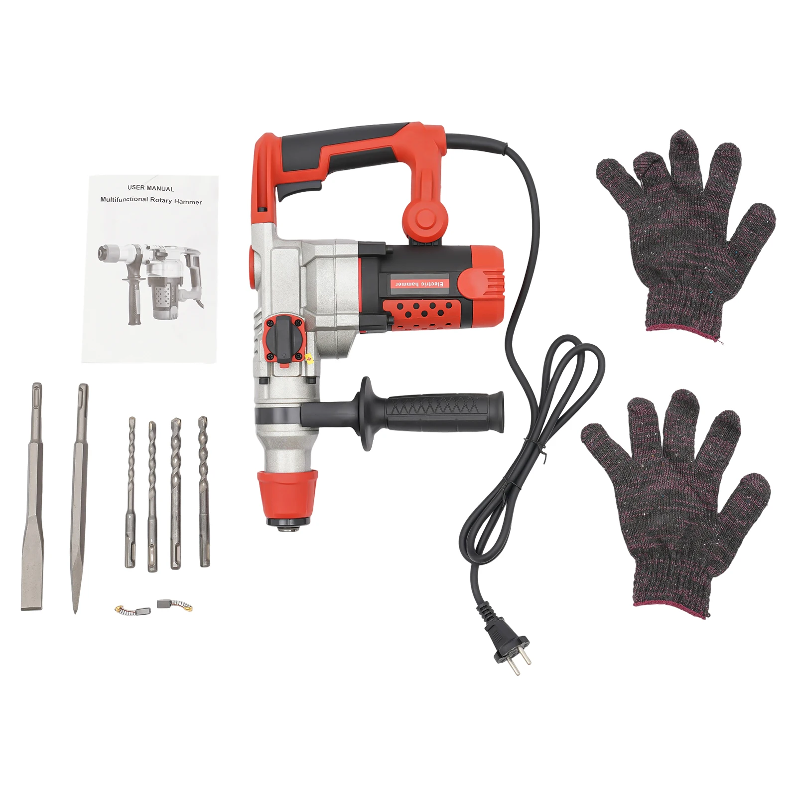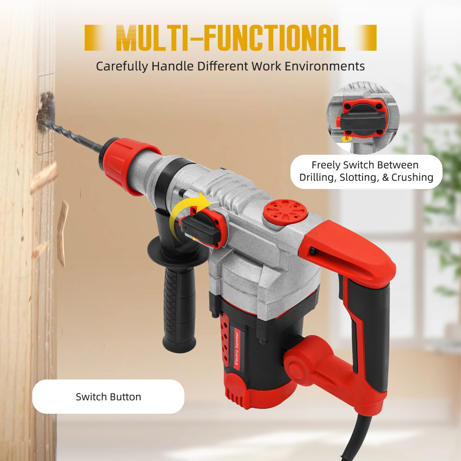 Strong Power: With a maximum power of 2200W and a speed of 930r/min, this electric drill can handle all kinds of crushing and drilling work efficiently and easily.