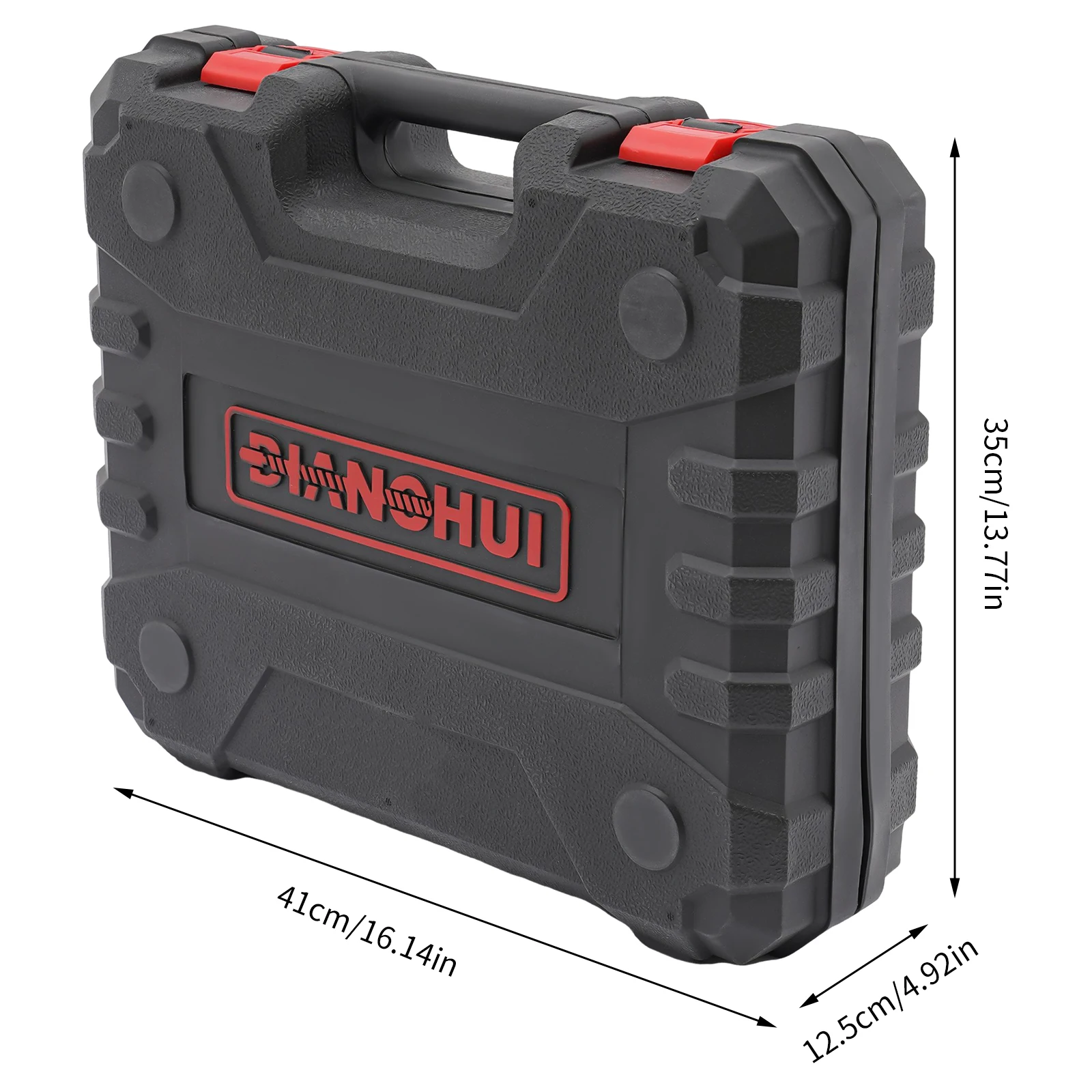 Easy to Carry and Store: This product comes with a red toolbox that can hold the whole set of electric drill tools, which is convenient for you to store and not easy to lose. Also, the handle on the carrying case is convenient for you to carry.