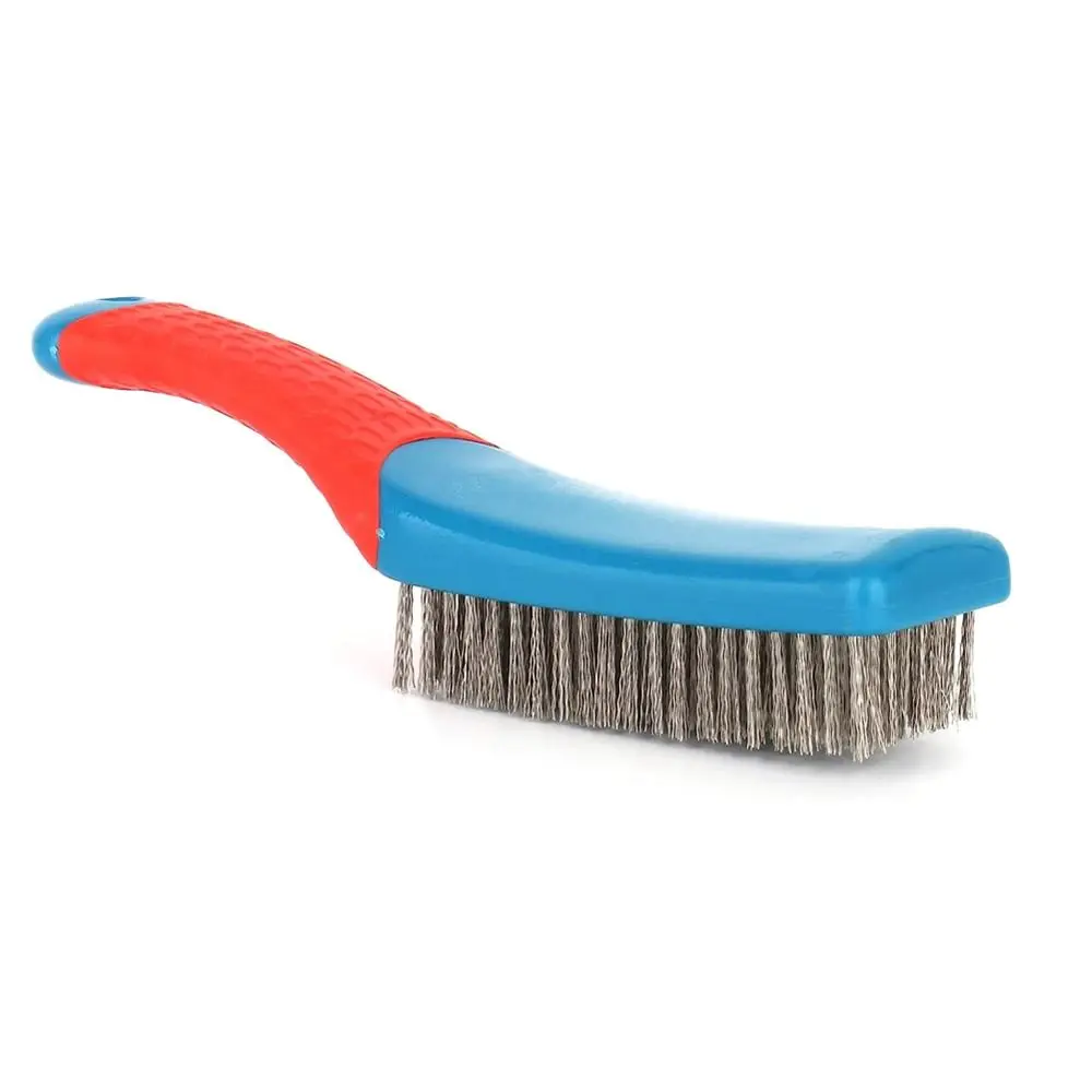 Durable Stainless Steel Small Wire Brush Silicone Handle Red and Blue Paint Removal Tool Scratch Brushes Cleaning Metal Rust