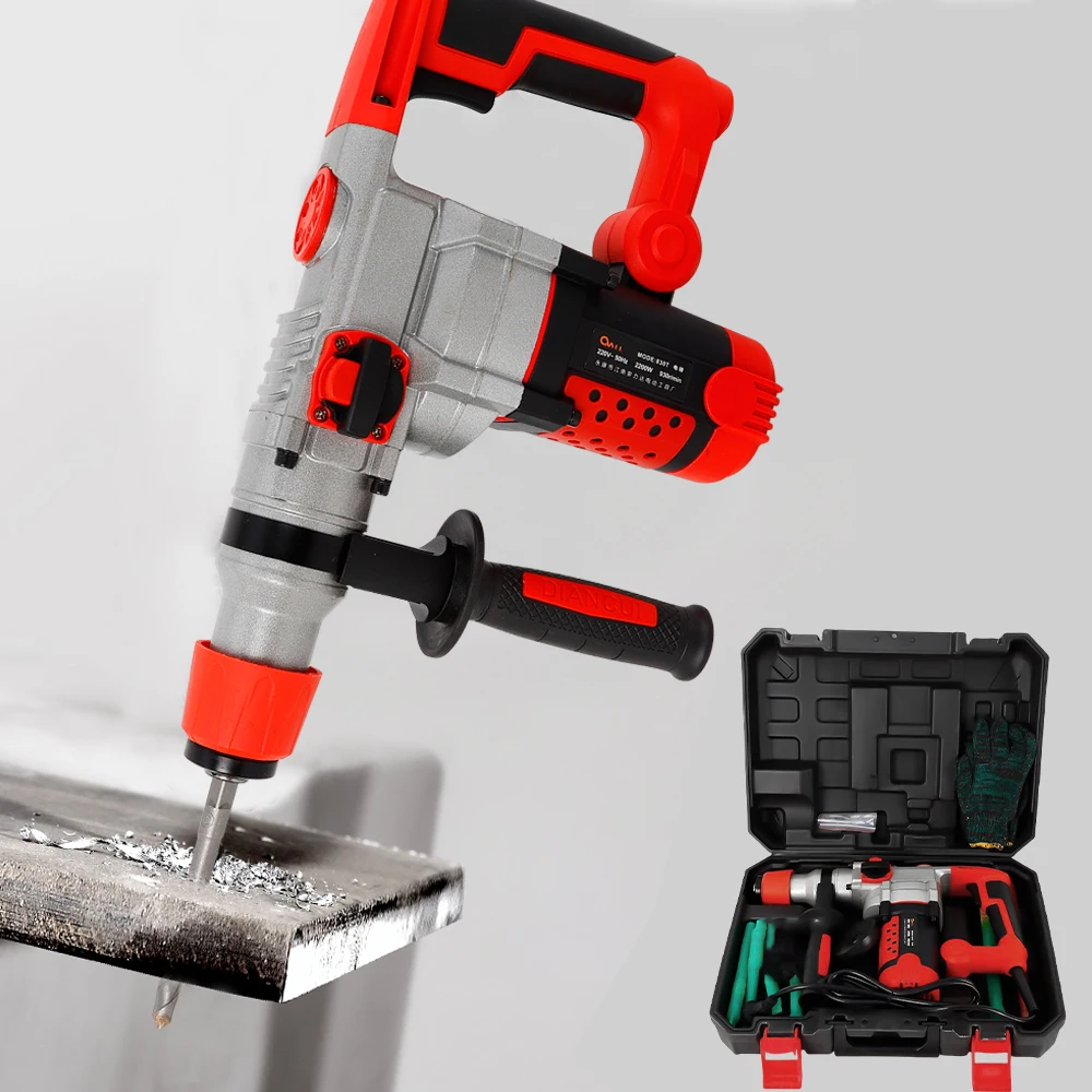 Strong Power: With a maximum power of 2200W and a speed of 930r/min, this electric drill can handle all kinds of crushing and drilling work efficiently and easily.