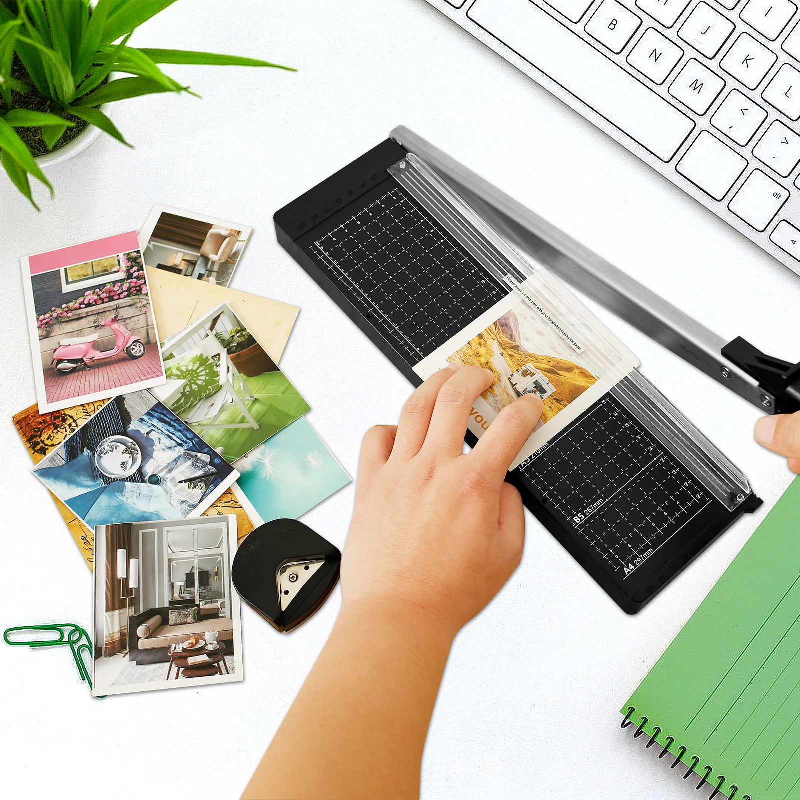 Precise Cutting: The movable cutting guide has clear and accurate scale, which helps precise cutting. It is safe and convenient to cut various materials, like printer paper, craft paper, and more.