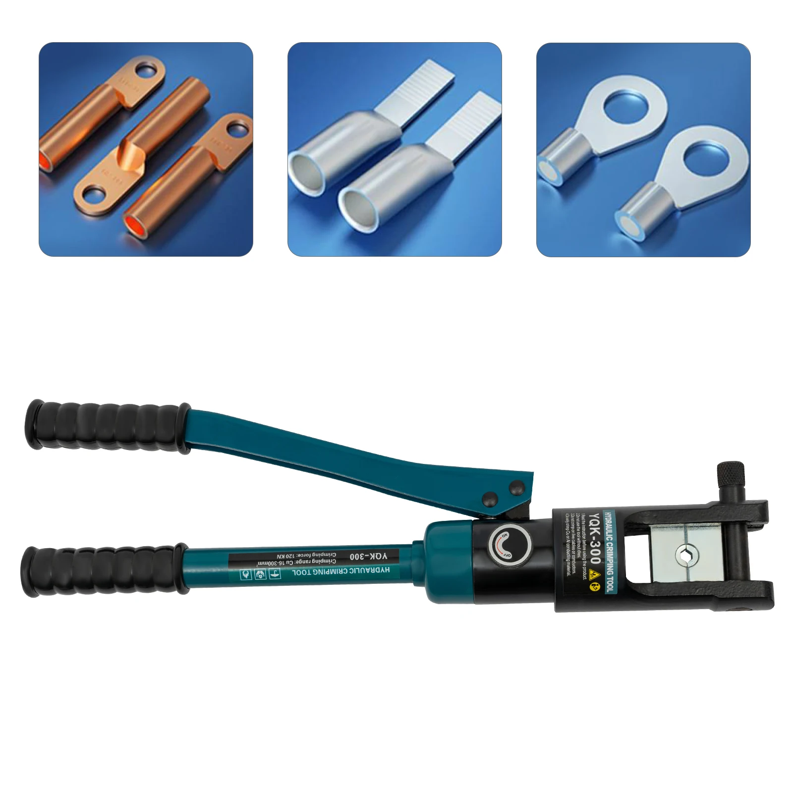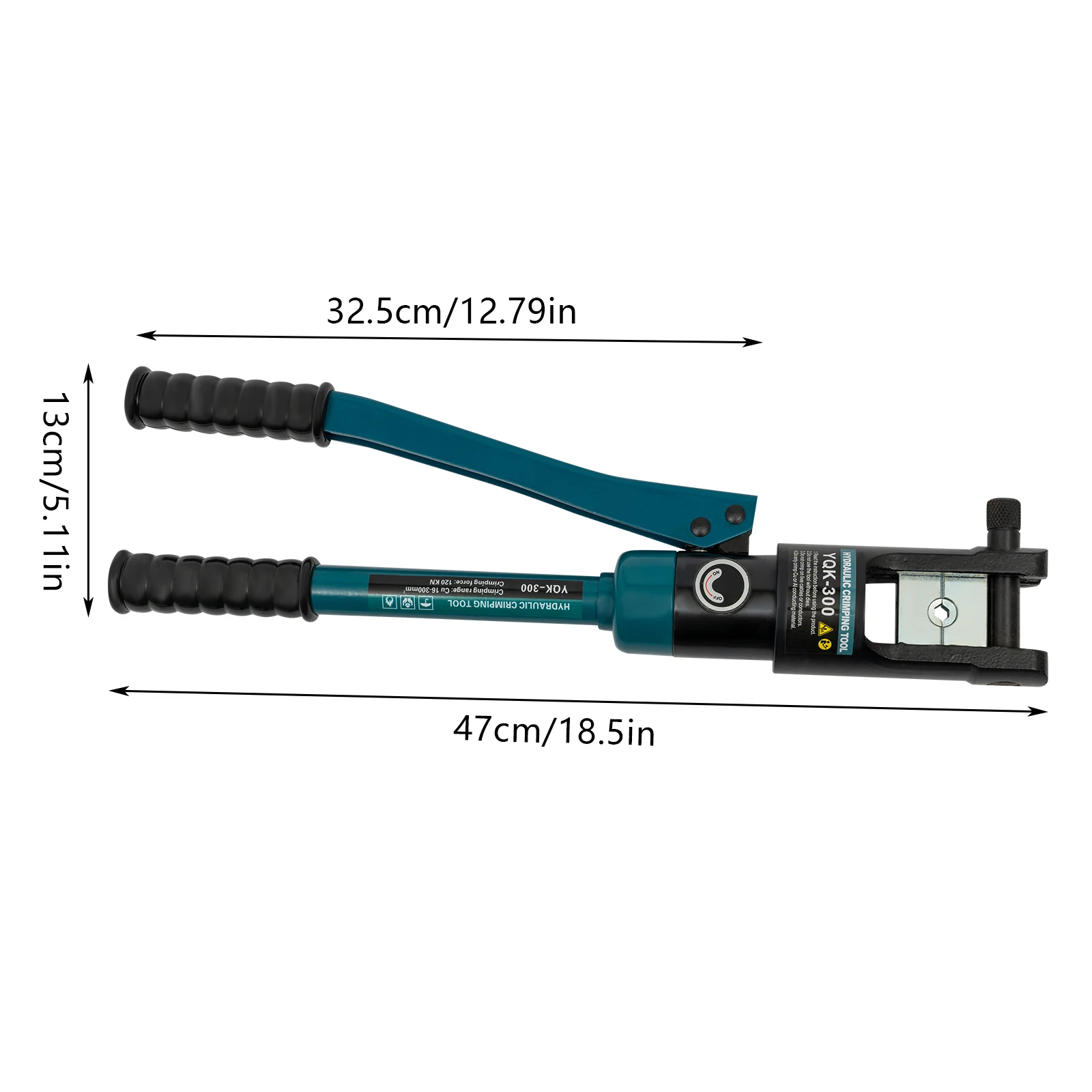 Multi-size Dies: It has 11 pairs of dies of different sizes (16/25/35/50/70/95/120/150/185/240/300mm²), and you can choose the right crimping dies for different wire ends to meet different requirements.