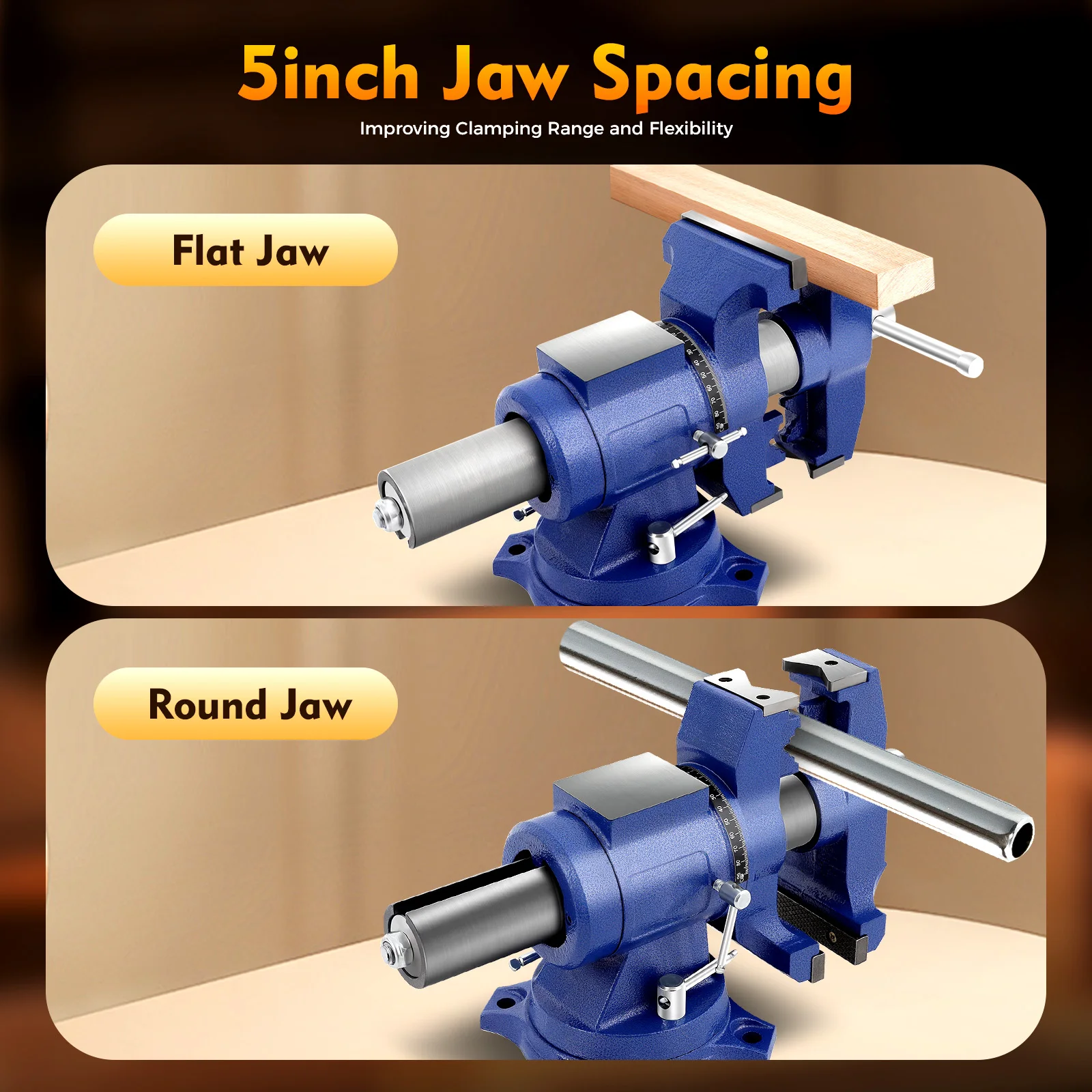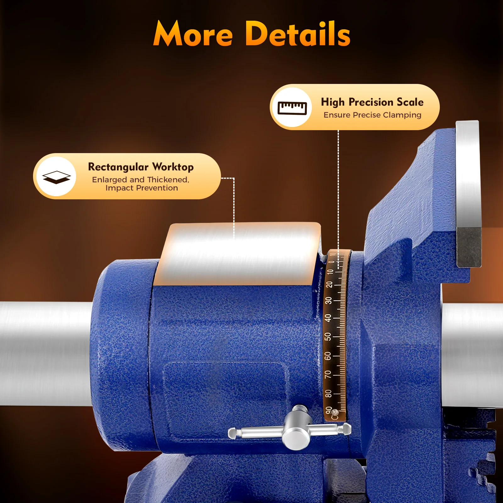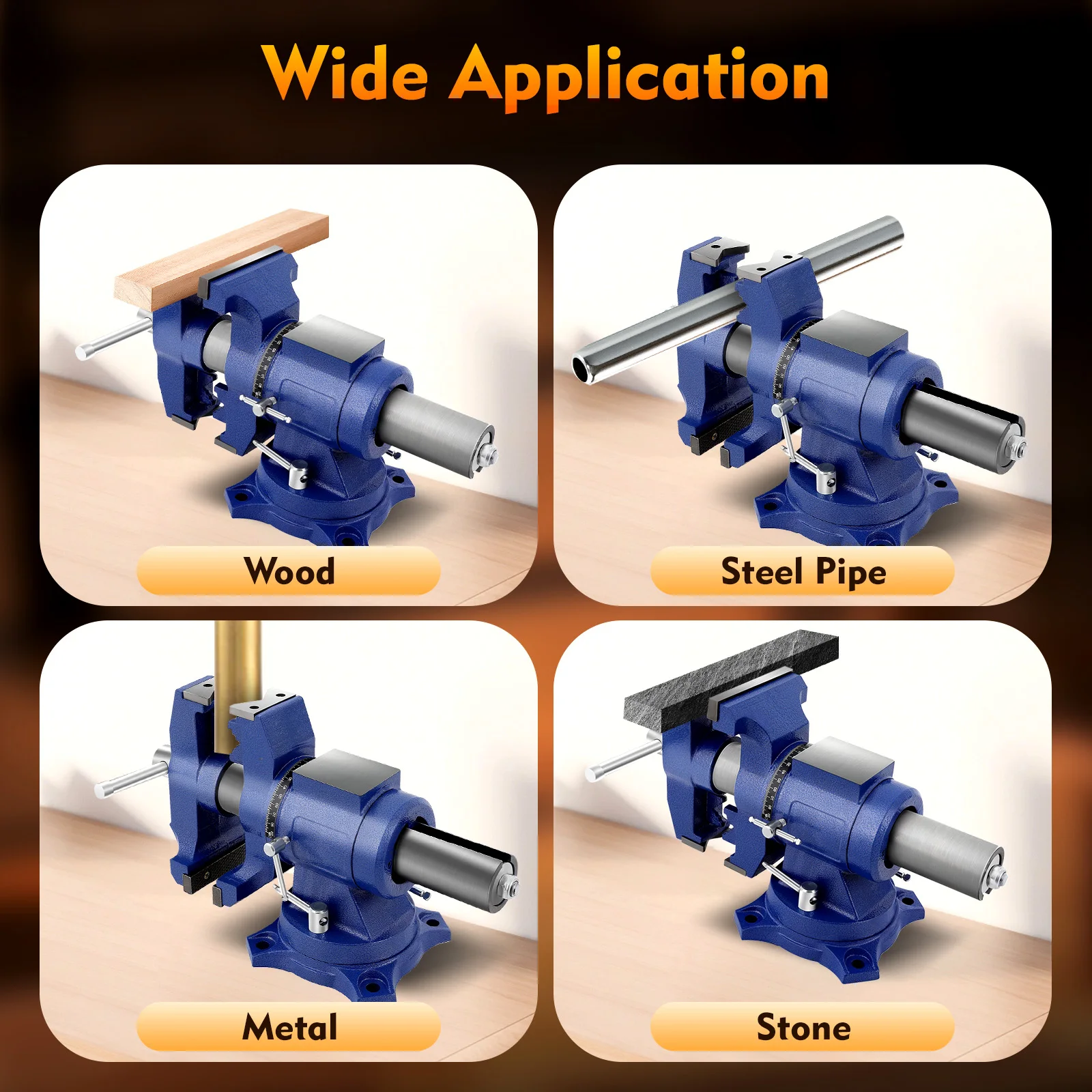 Widely Applicable: Both the head of the vise and the base can rotate 360°, meeting various clamping needs. The dual jaw design allows for a wide clamping range.