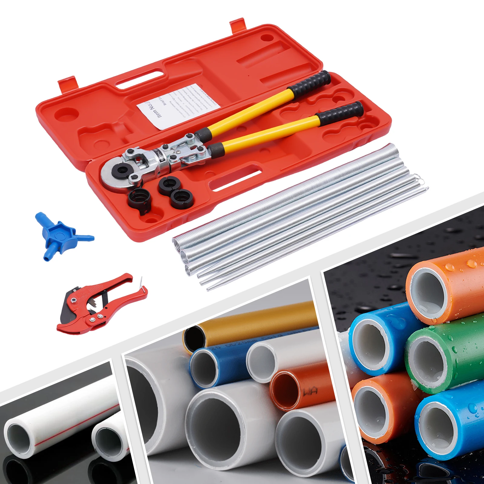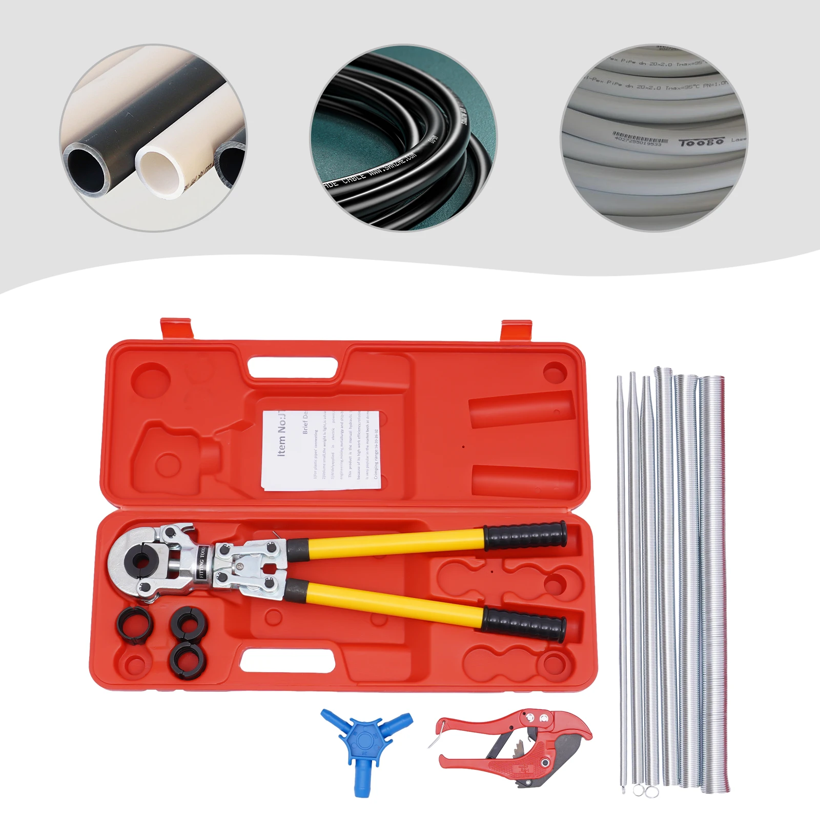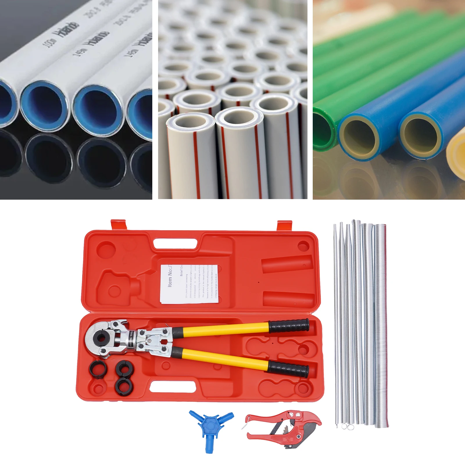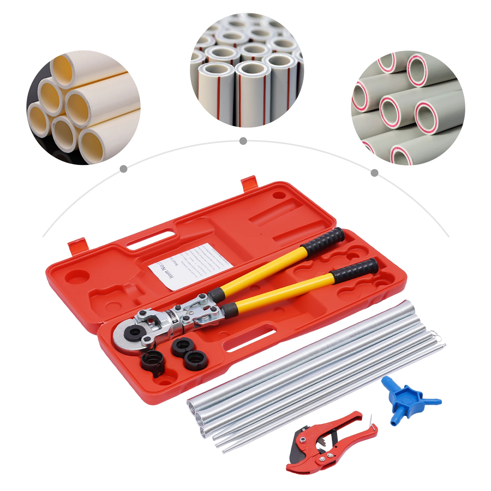 Pipe Crimping Pliers Hand Pressing Kit,360° Rotating Head,8Pcs Tool Set PEX Presser ø16-32 mm Pipe Crimping Pliers Hand Kit