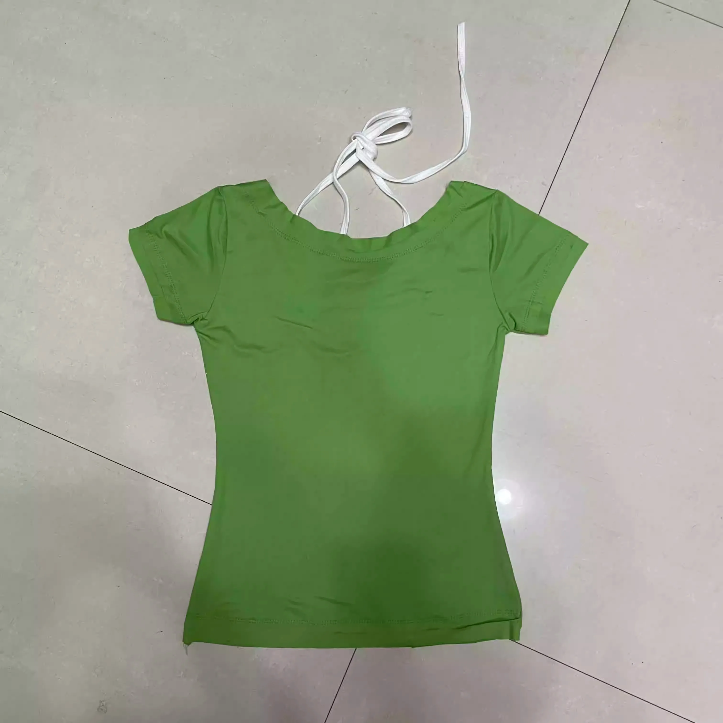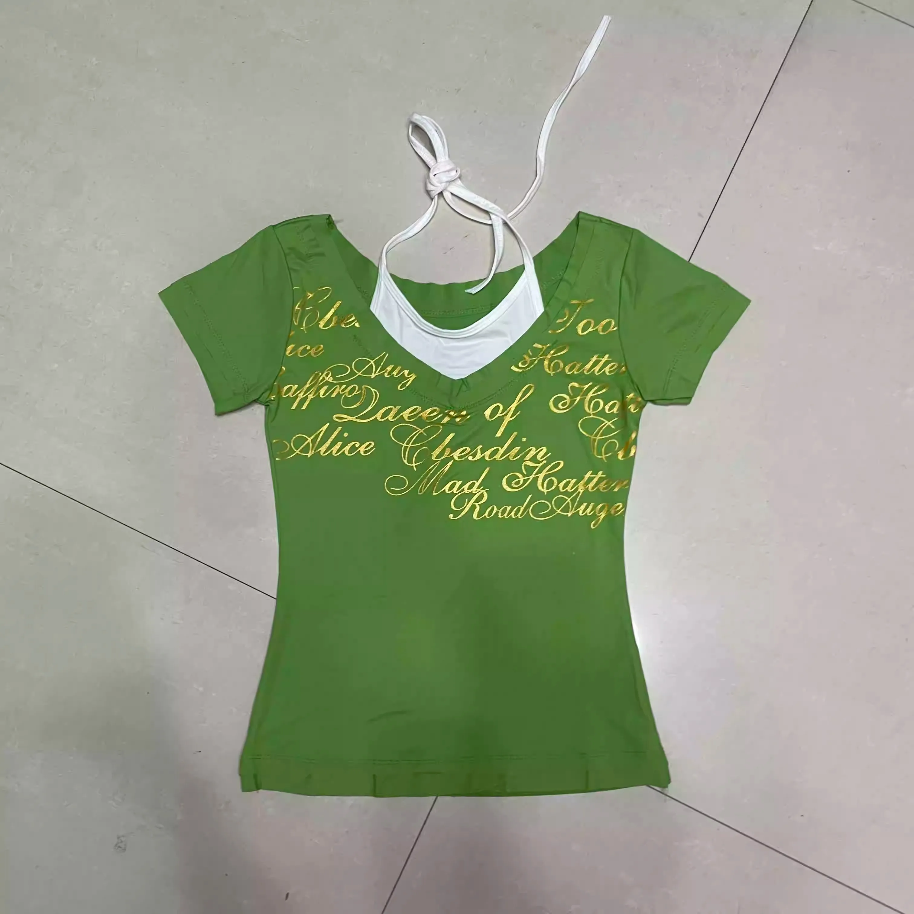 Subculture Punk Vintage American Sweet Short-sleeved T-shirt Women Slim Top Sexy Green Summer 2024 Casual Retro Simple Tees