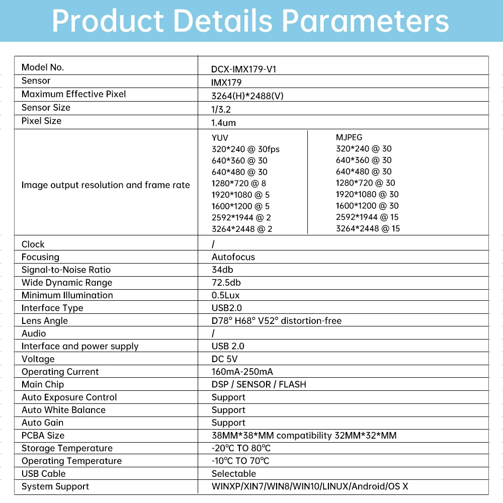 1. High-quality image: Using IMX179 high-definition sensor chip, stable performance, high-definition lens, clearer picture.