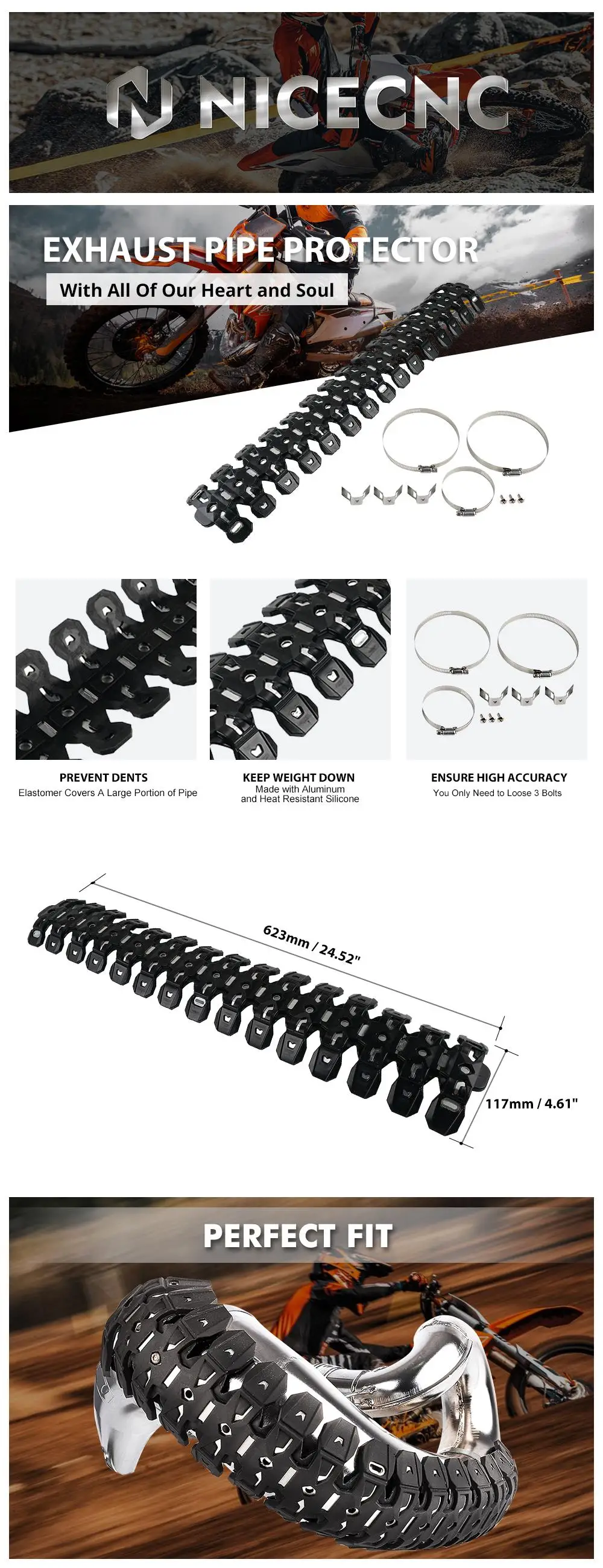 New generation of pipe guard that blends special stainless steel and silicone to provide the best protection to the 2 stroke pipes. The use of elastomer reduces vibration noises and it is resistant to high temperatures. The mounting system makes it easy to install and disassemble the protection when cleaning, using only 3 brackets to assemble the part on the pipe and, after that, you only need to tight and loose 3 bolts. The protection is flexible in order to adapt to your "S" shape pipe.