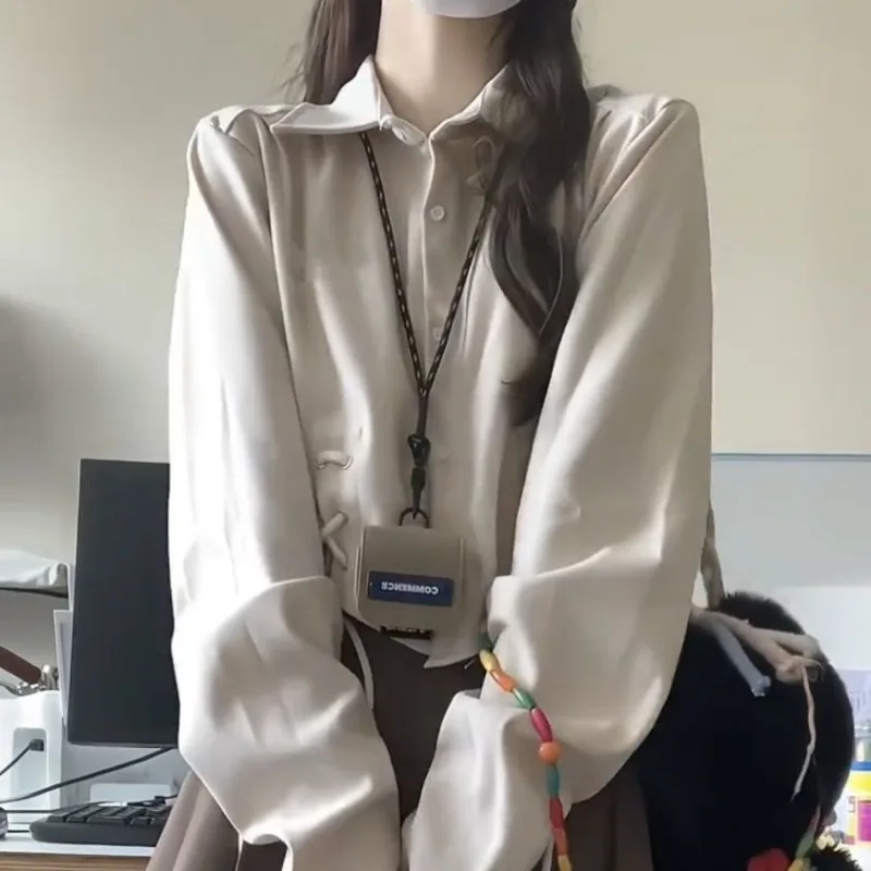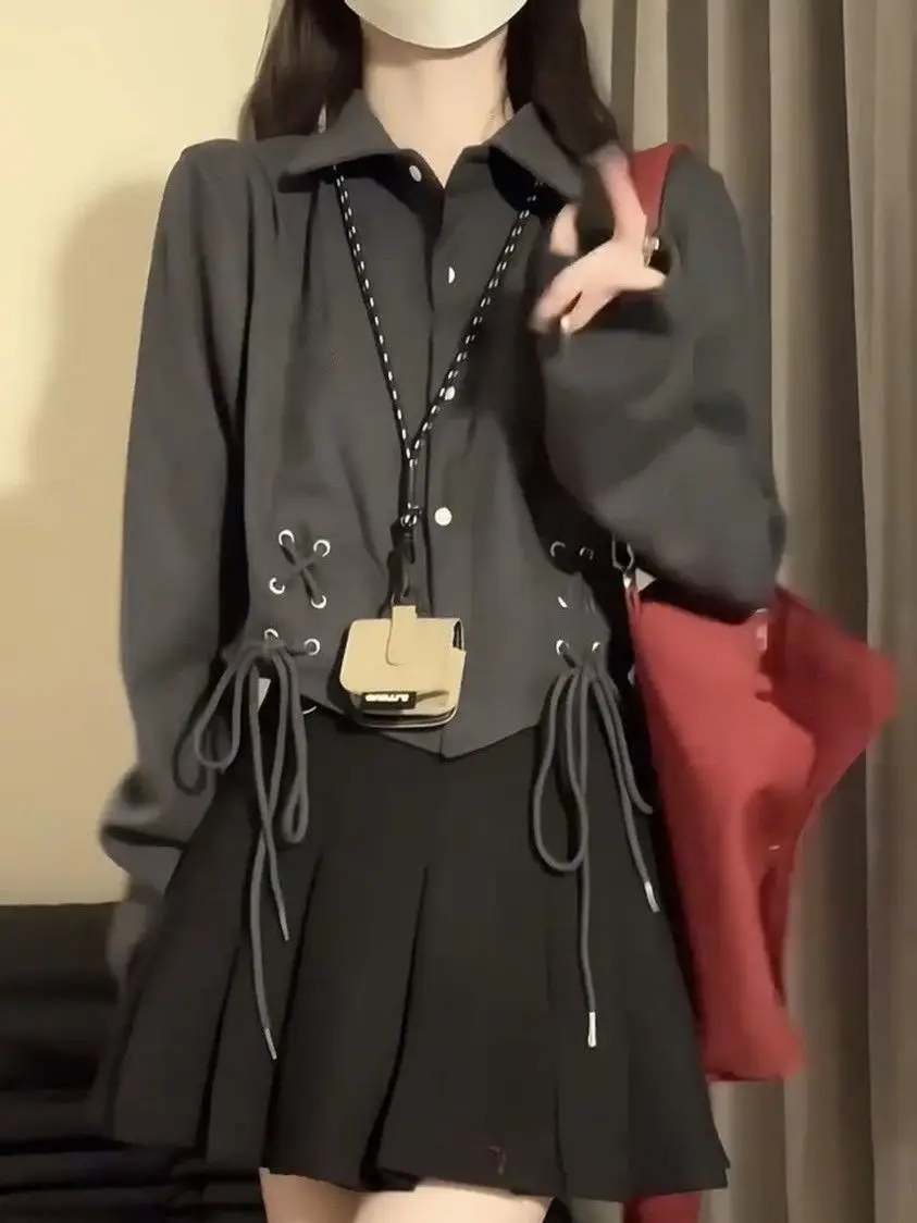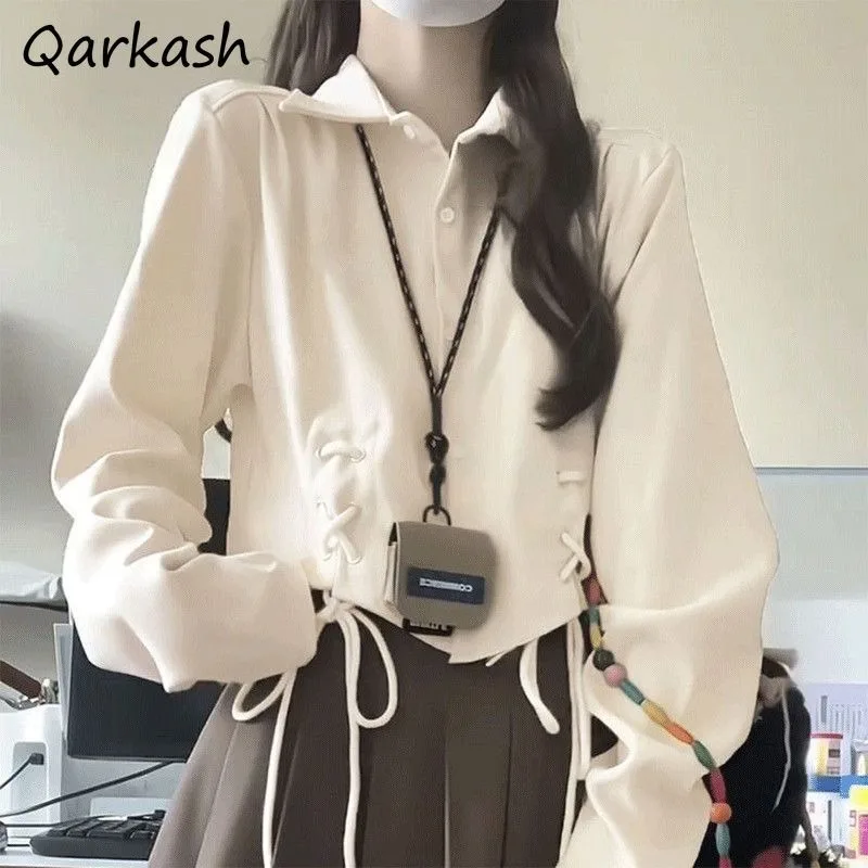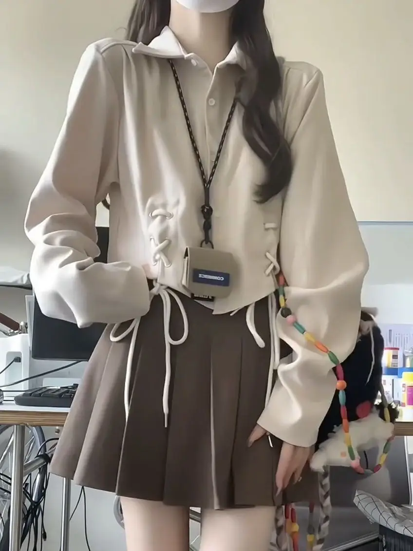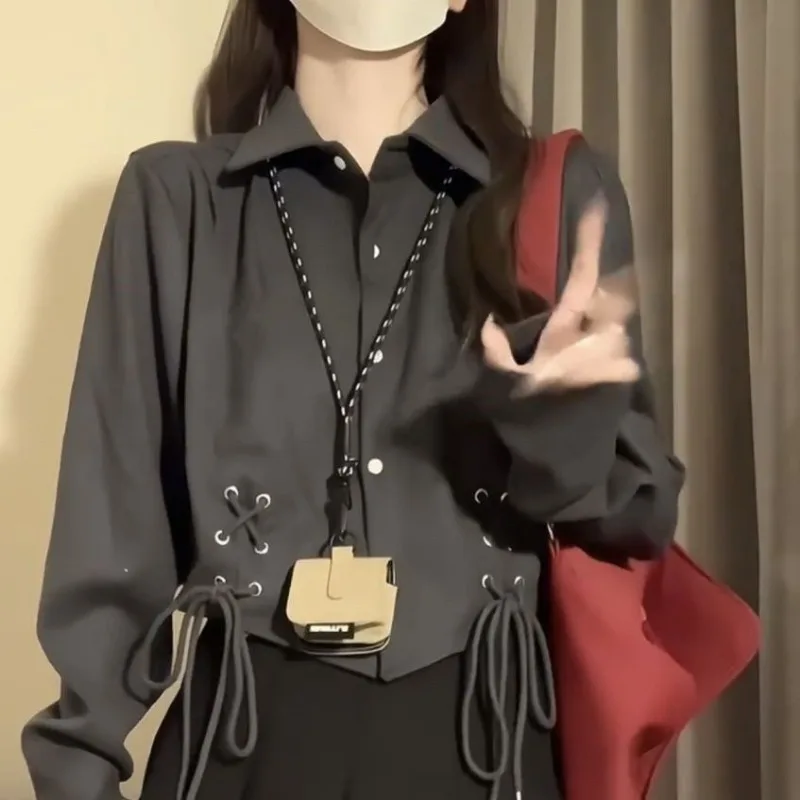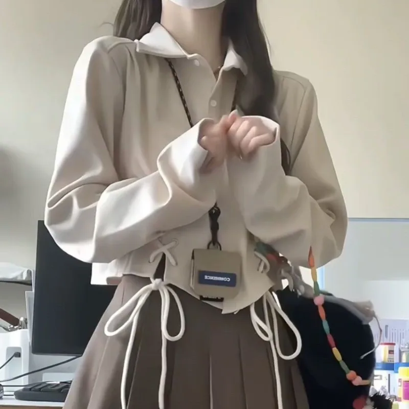 Long Sleeve Shirts Women Japanese Style Sweet Spicy Girls College Bows Lace Up Solid Autumn Winter Loose Single Breasted Fashion