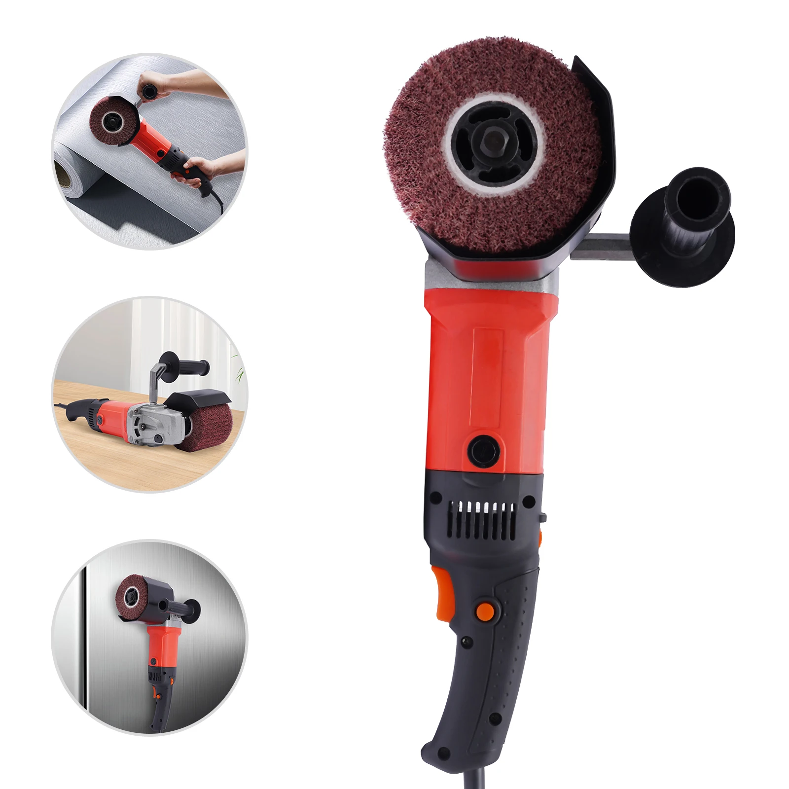 This product can be used for polishing, grinding, and texture processing, as well as cleaning dirty surfaces or removing paint residues. It can be widely used in households, automotive maintenance, workshops, factories, machinery manufacturing, and other places to process materials such as stainless steel, cast iron, aluminum, non-ferrous metals, plastics, etc.