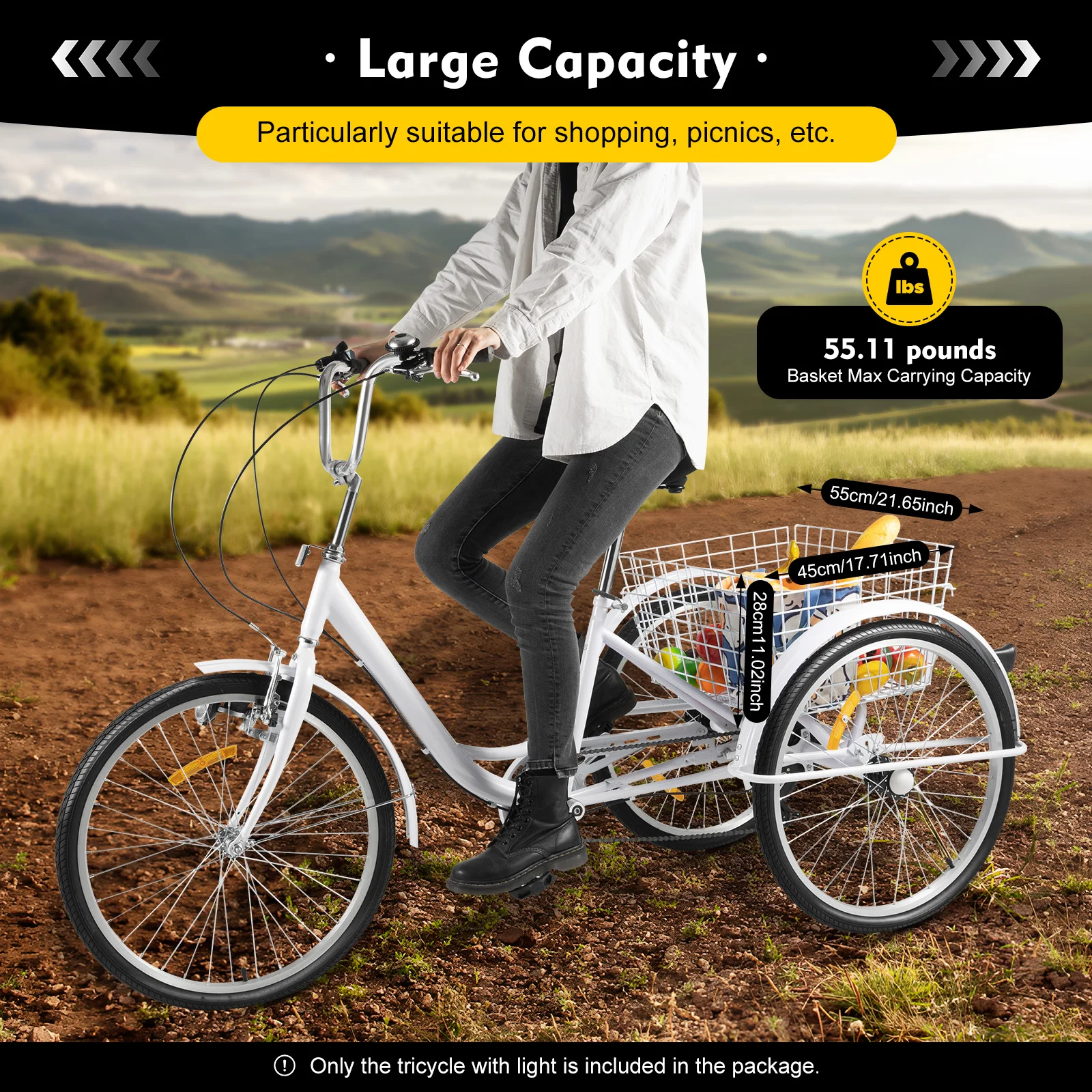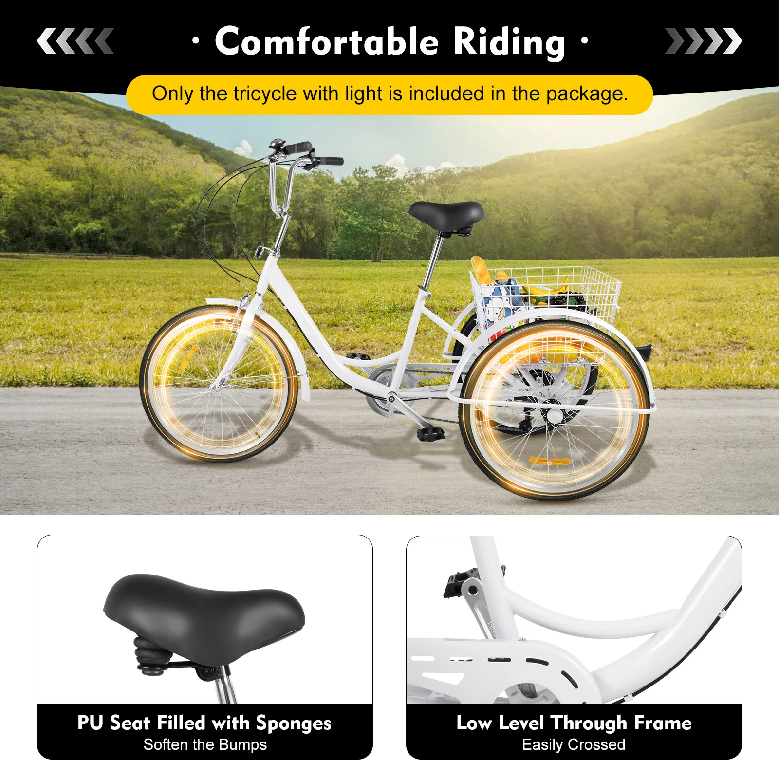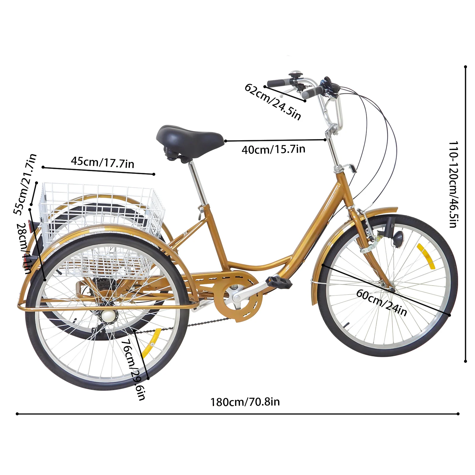 Convenient to Use: This adult tricycle is not only convenient for you to travel healthily and safely, but it also has a basket at the back so that you can carry more things after shopping.