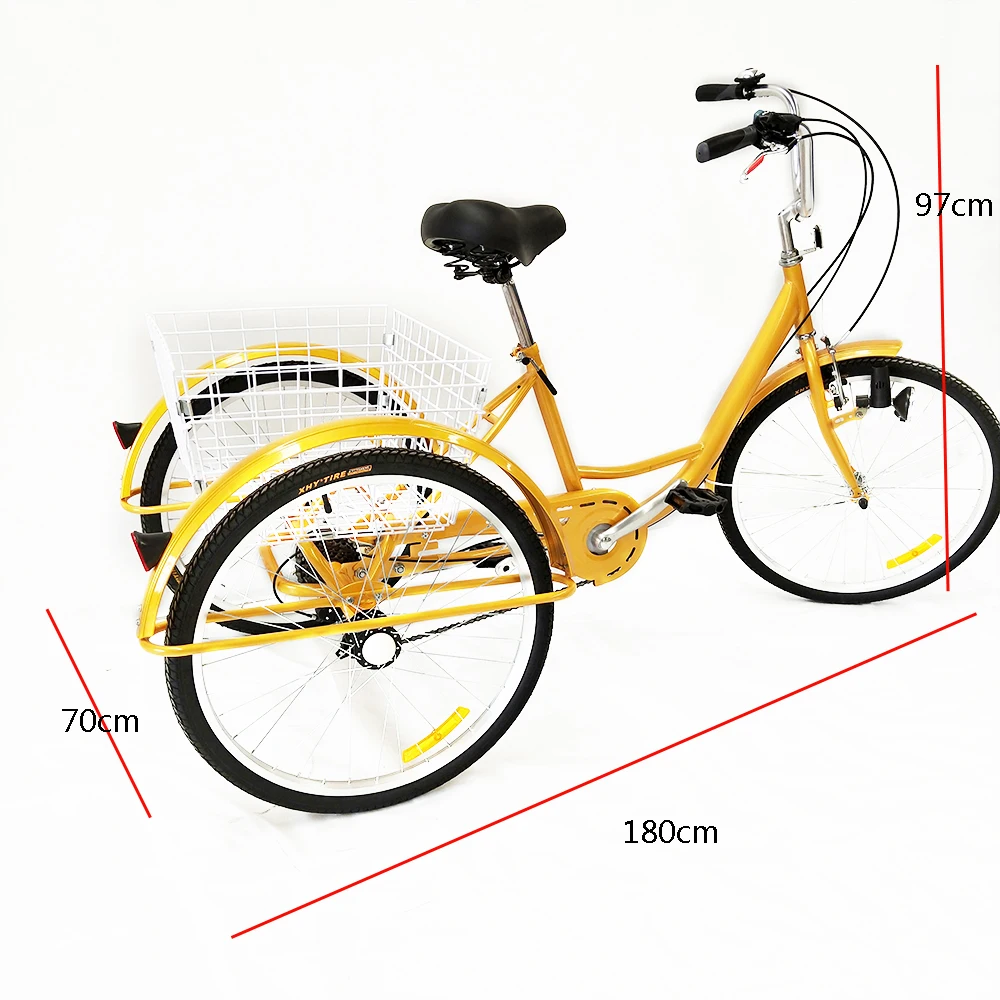 24 Inch 6 Speed Multicolor Tricycle with Light Three Wheel Bike Adult Tricycle  Shopping Tricycle with V-type Front Brake