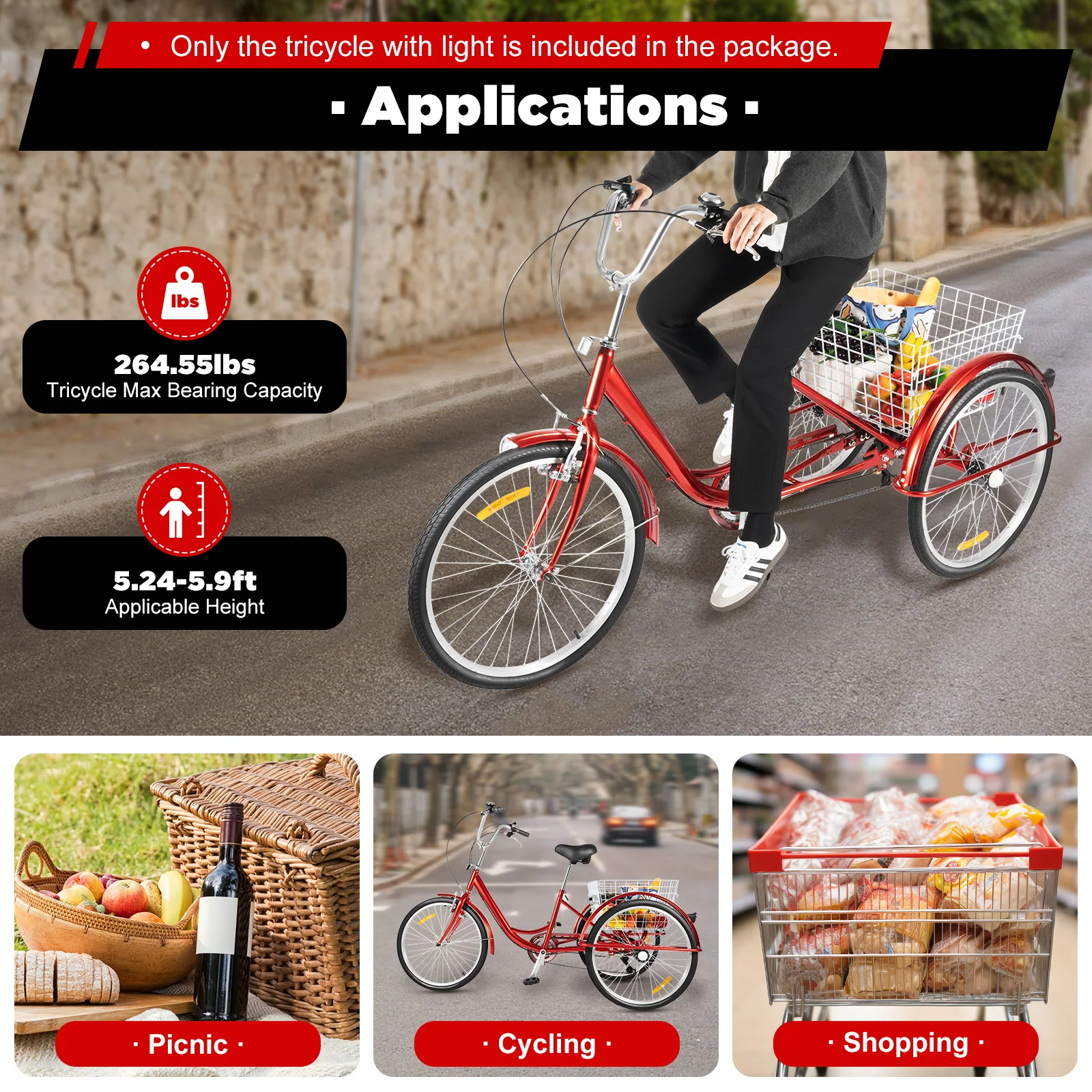 Tricycle Max Bearing Capacity: 120kg/264.55lbs