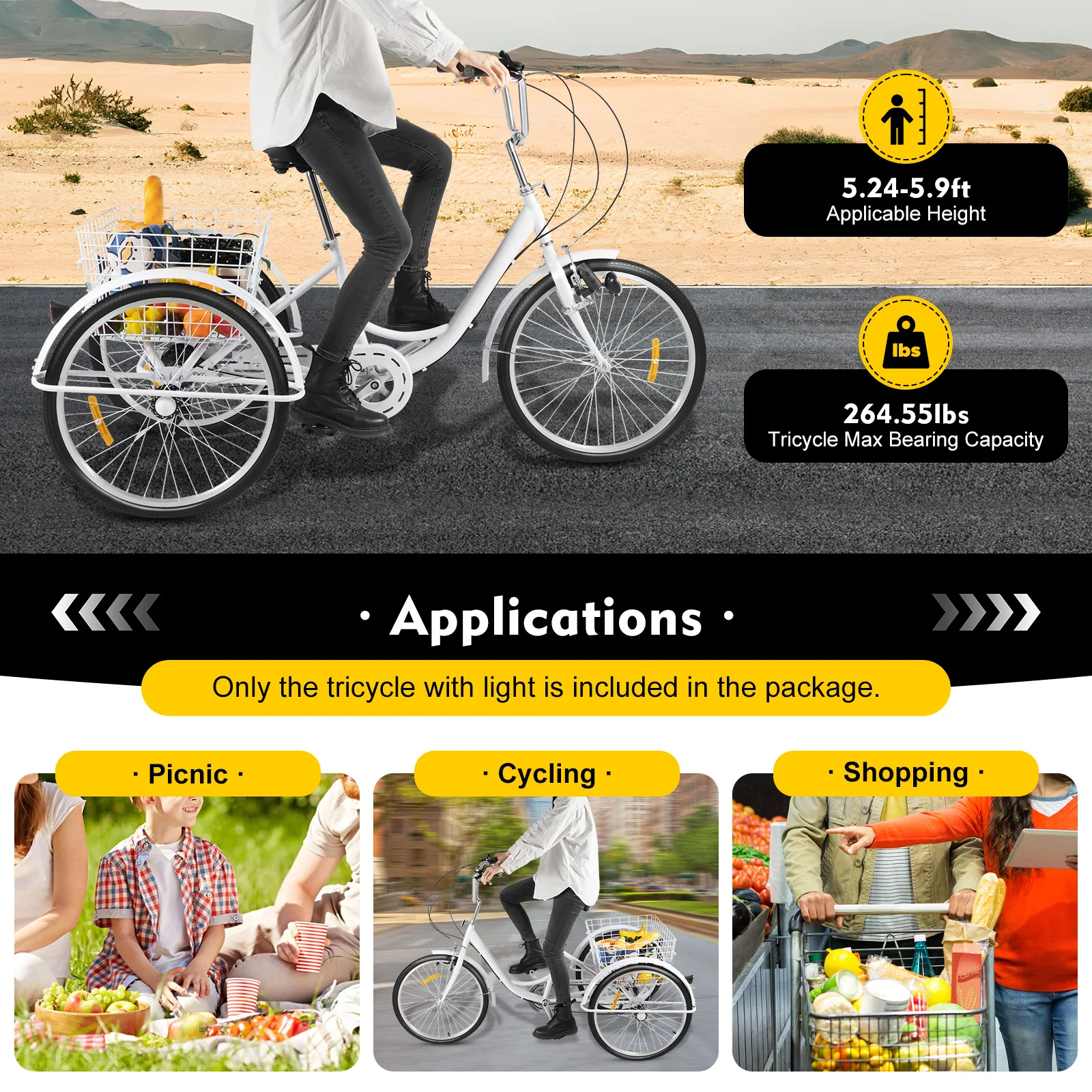 This product is suitable for people with a height of 5.25-5.91ft, and can be used for entertainment, shopping, or exercise, and is applicable to towns, beaches, bicycle lanes, and various roads.