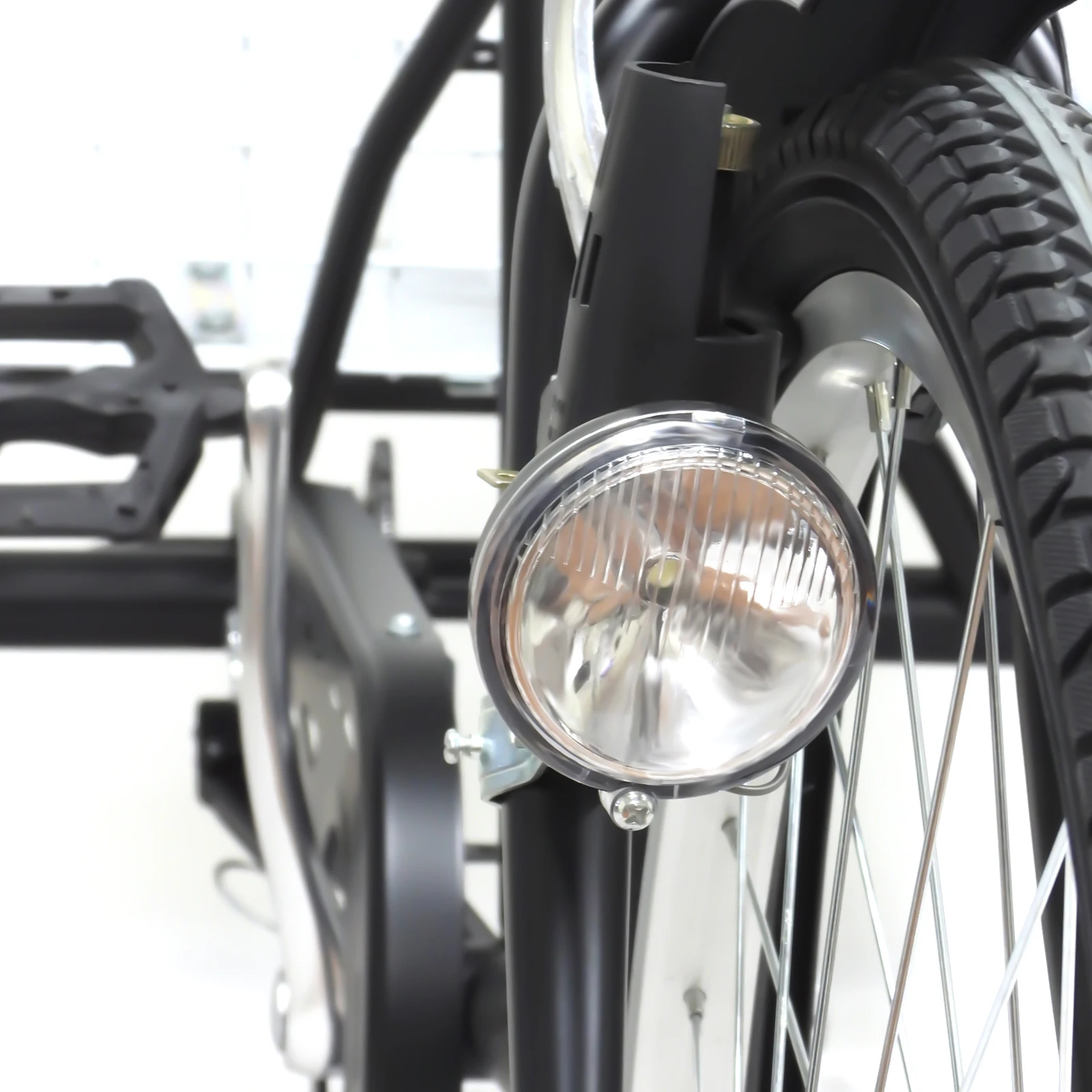 O-shaped Crash Beams: They are on each rear mudguard and make the tricycle body more sturdy and safer.