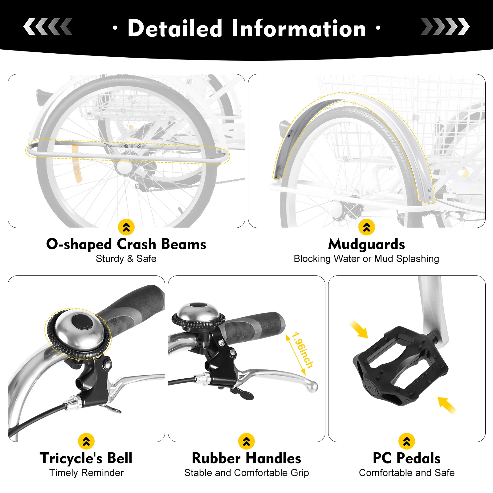 Tricycle's Bell: A small bell next to the handle alerts nearby passersby and vehicles for further safety and ease of control.