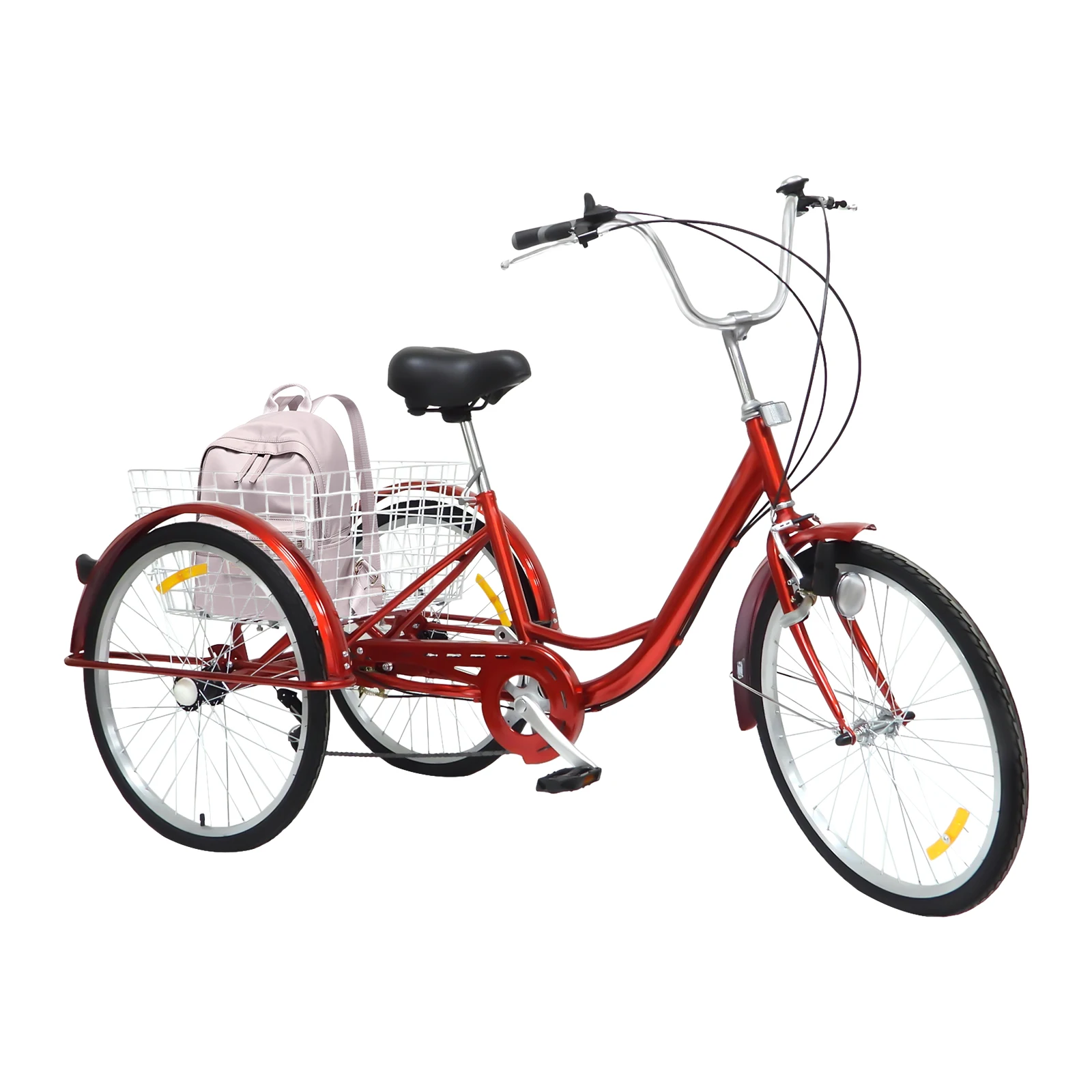 24 Inch 6 Speed Multicolor Tricycle with Light Three Wheel Bike Adult Tricycle Shopping Tricycle with V-type Front Brake