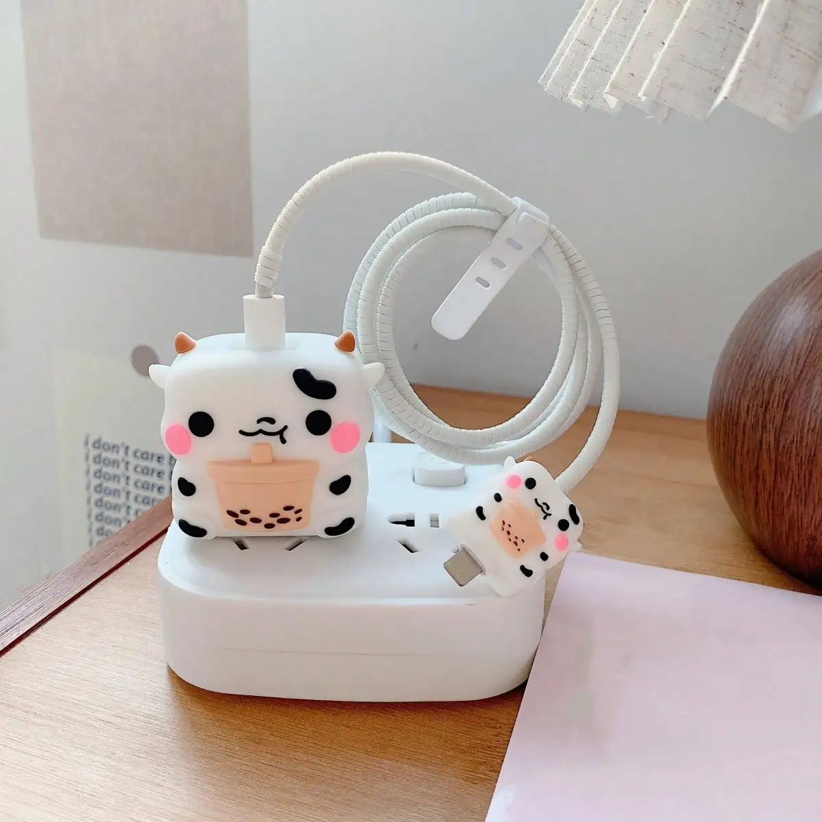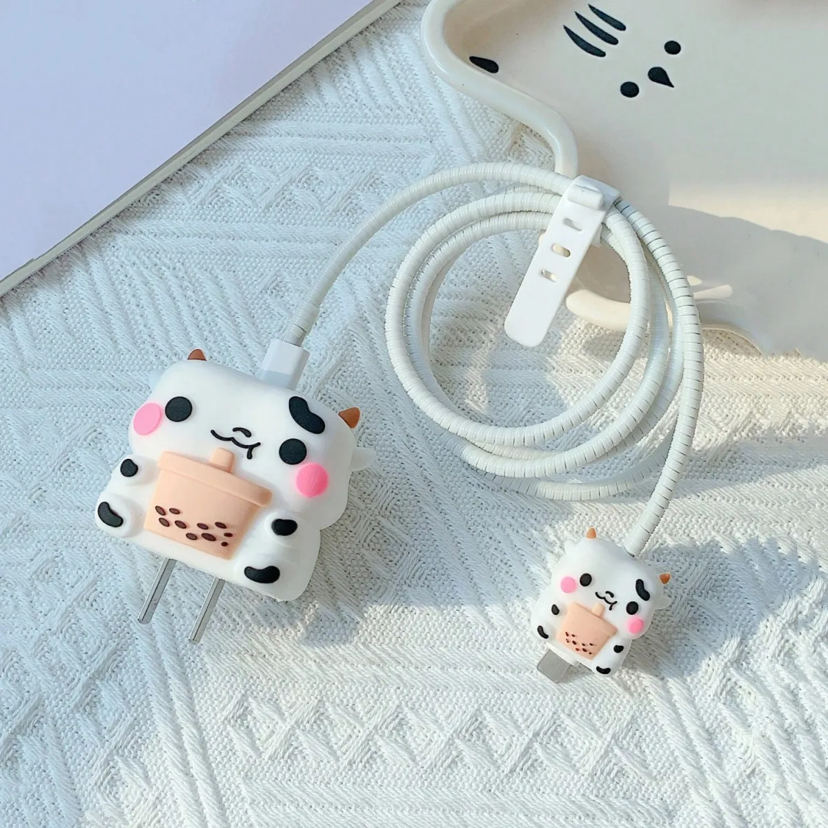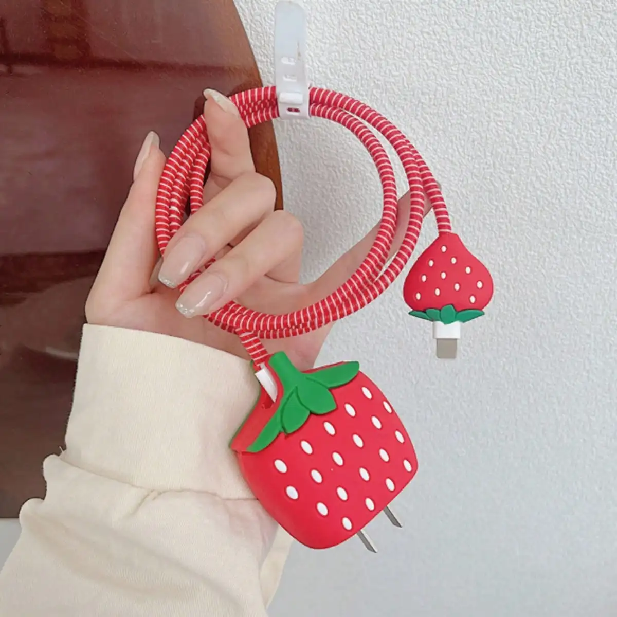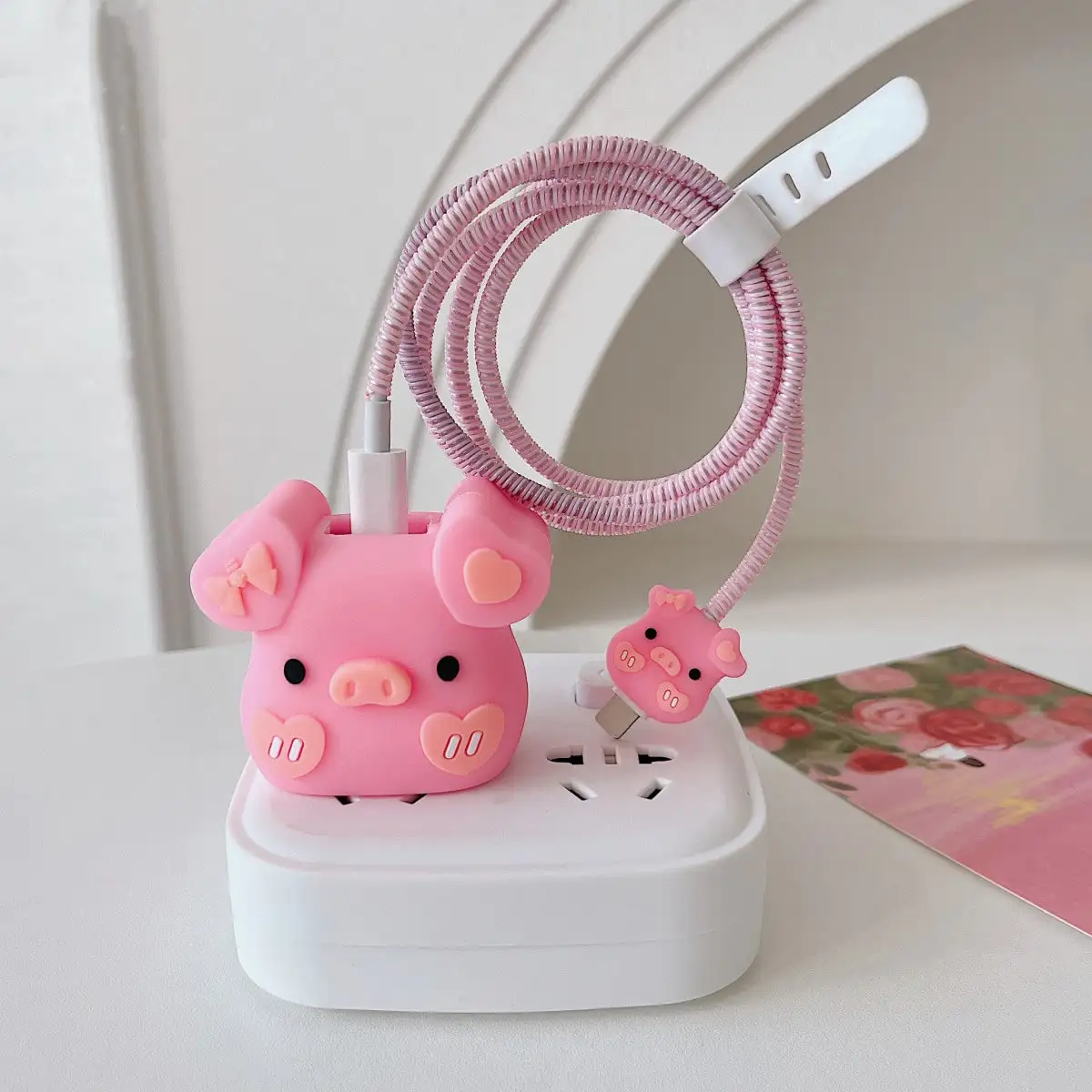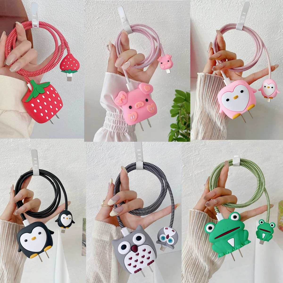4pcs Cute Penguin Pig Strawberry Charging Data Cable Protector For iPhone 18/20w Charger Protective Cover Winder Accessories