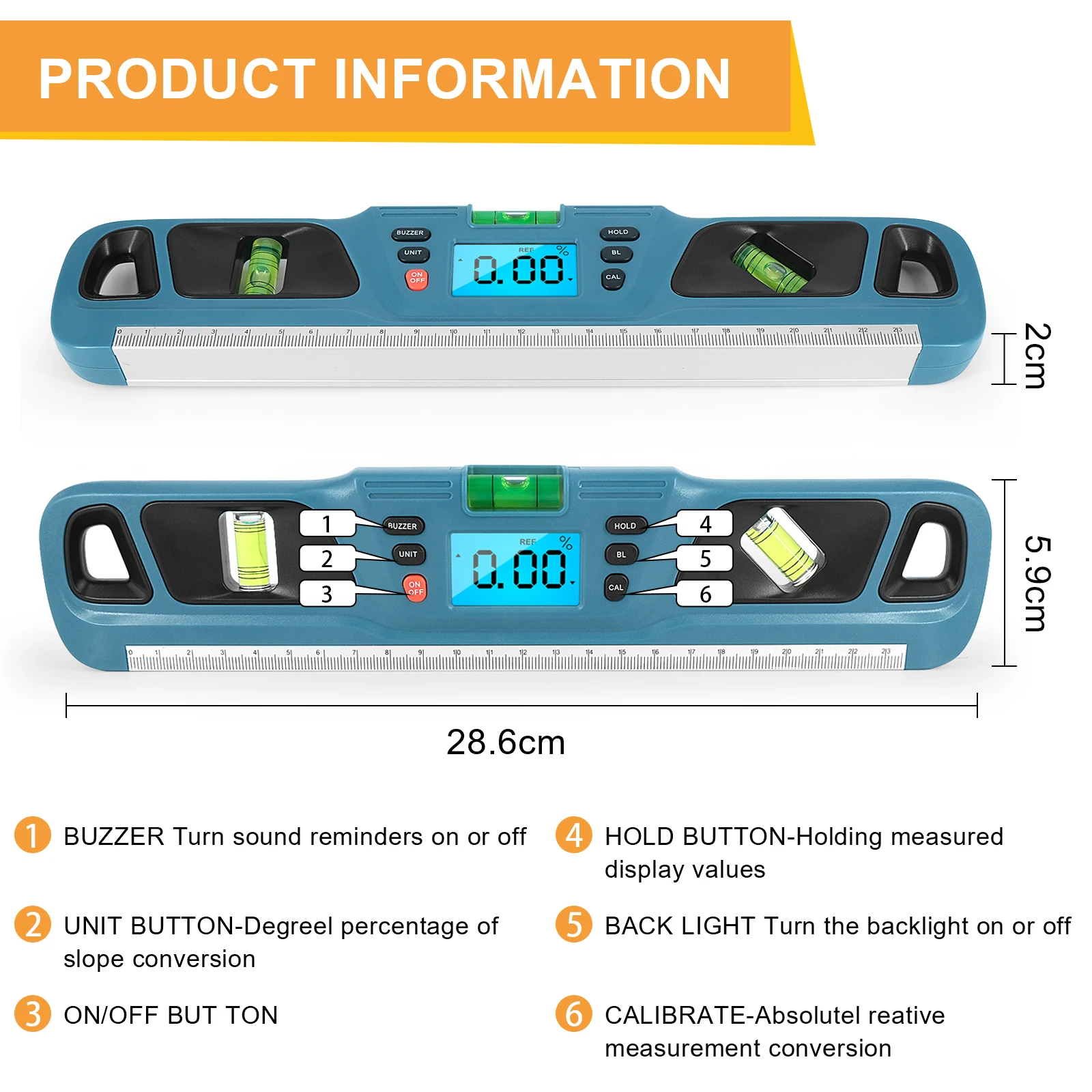 4.Multi-function Digital Level: The digital level is portable and convenient, especially useful for completing work on ladders, roofs or other locations. Great tool for automotive, wood & mechanical industries, machinery, medical fields and etc.