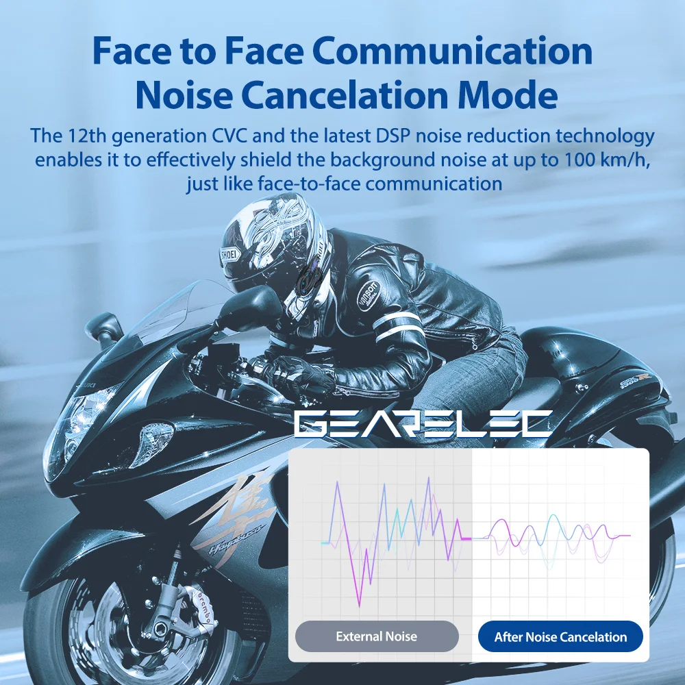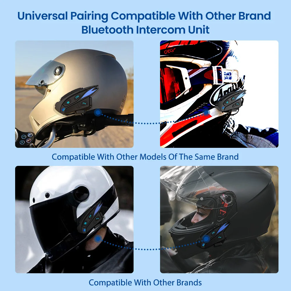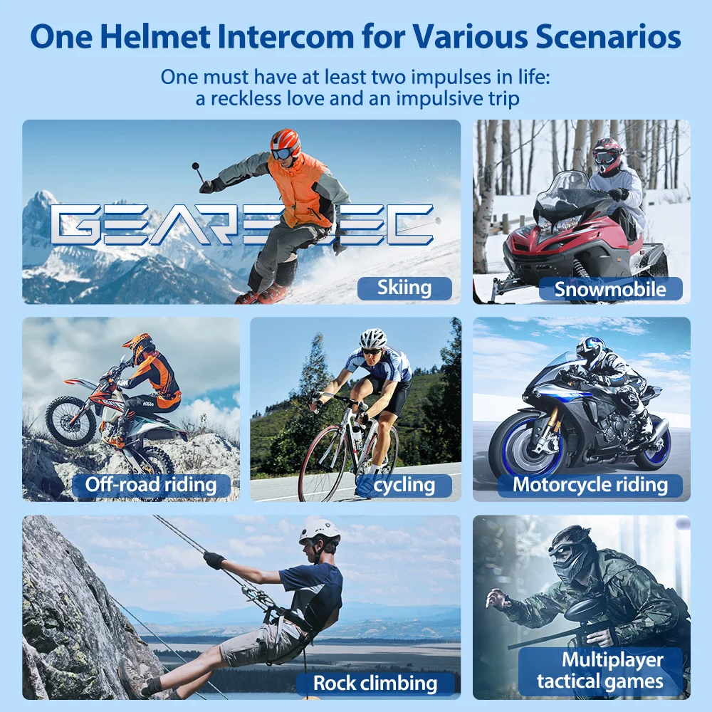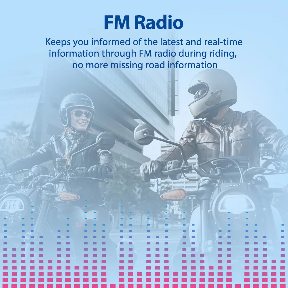 Communication distance: 1000 meters (2 riders), 2000 meters (group intercom mode), under ideal environment