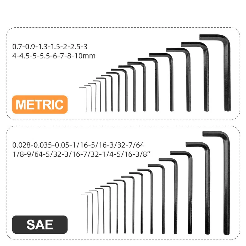 30Pcs Hexagonal Wrench Tool Set SAE & Metric Allen Wrenches L-Shaped Chrome Vanadium Steel Mechanical Hand Tools Screwdriver Kit