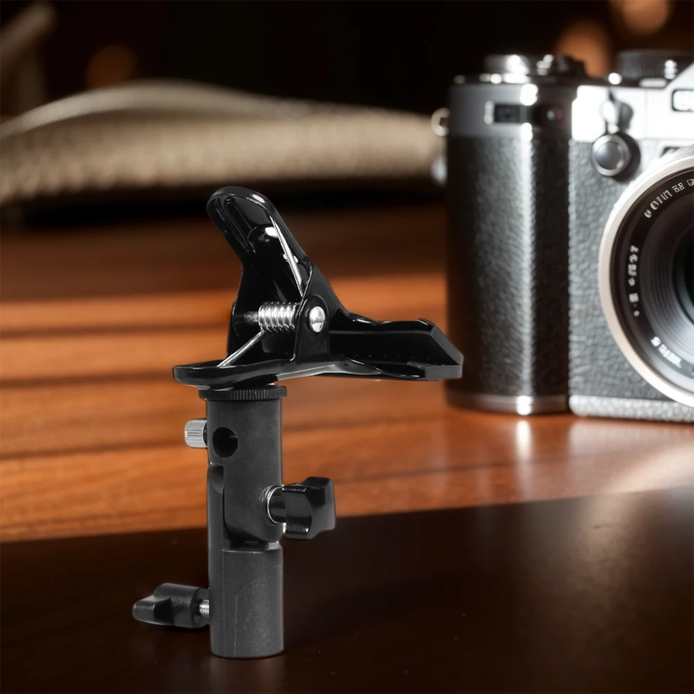 4. Versatile Mounting Options: Equipped with both 1/4 and 3/8 inch adapters, the clamp clip holder is compatible with a wide range of light stands and tripods. This versatility ensures it can be used with almost any setup, enhancing its utility in various photographic environments.