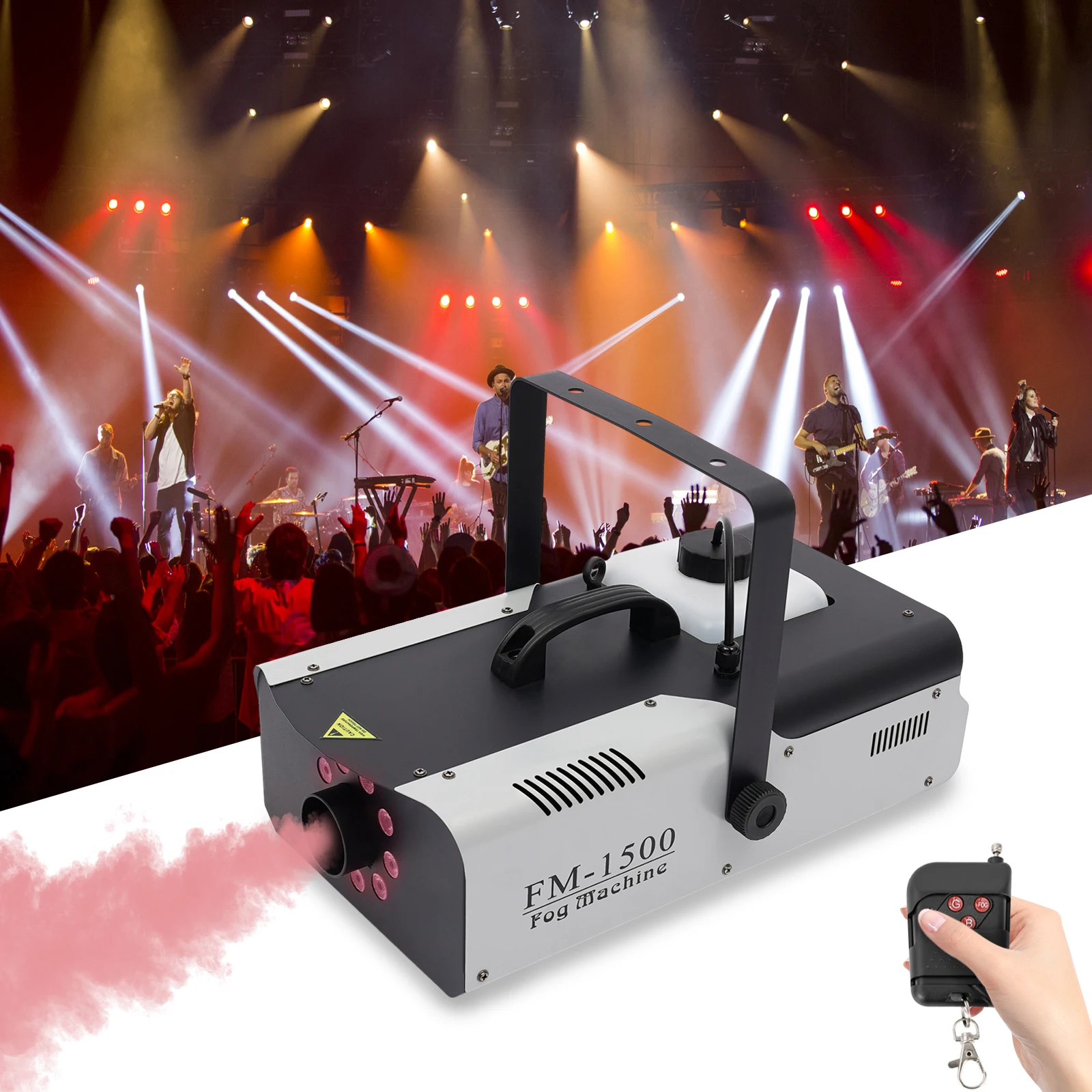 Fog is probably the most important show effect. Without fog, lighting effects would only be half as spectacular. It is all the more interesting to illuminate the ejected fog directly! The LED fog machine makes it possible!