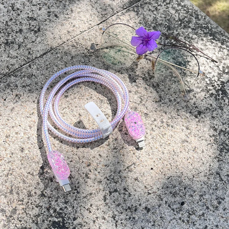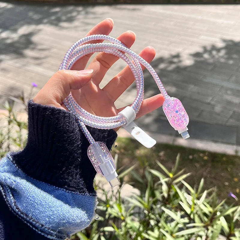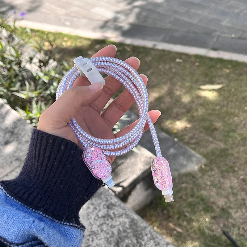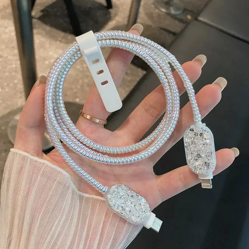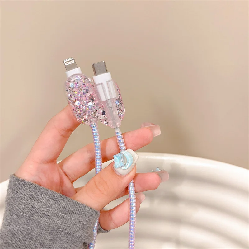 Korea Cute Glitter Silver Change Charger Protector Cover Charger Line Protectors Organizer Winder Protector Cover Accessories