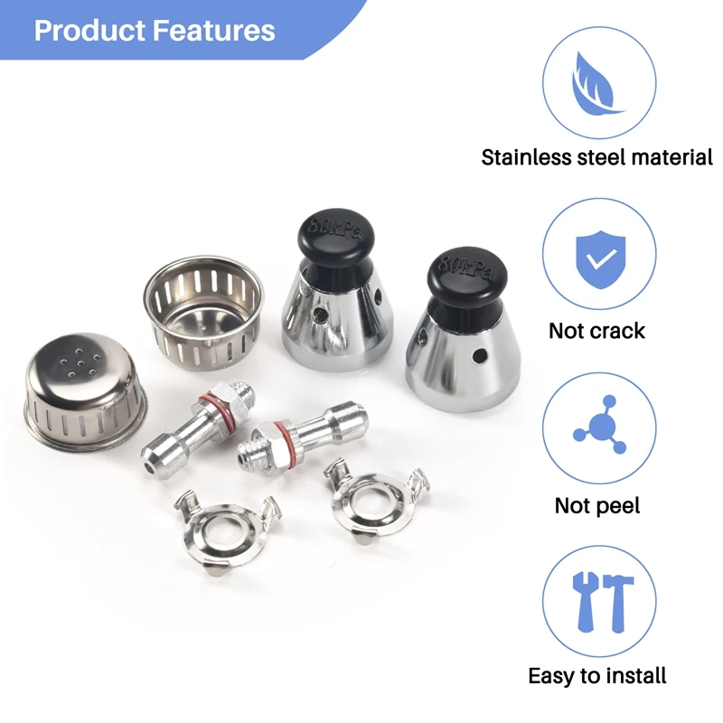 The pressure cooker pressure relief valve set is easy to use and small and light.(For different batches, the color of the rubber ring of the exhaust rod may be other colors, which will not affect the use)